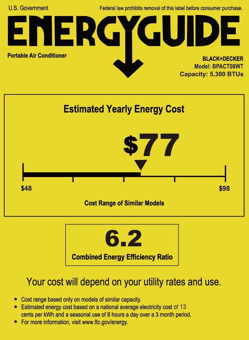 | Seasonal Energy Efficiency Ratio (SEER) | 6.2 |