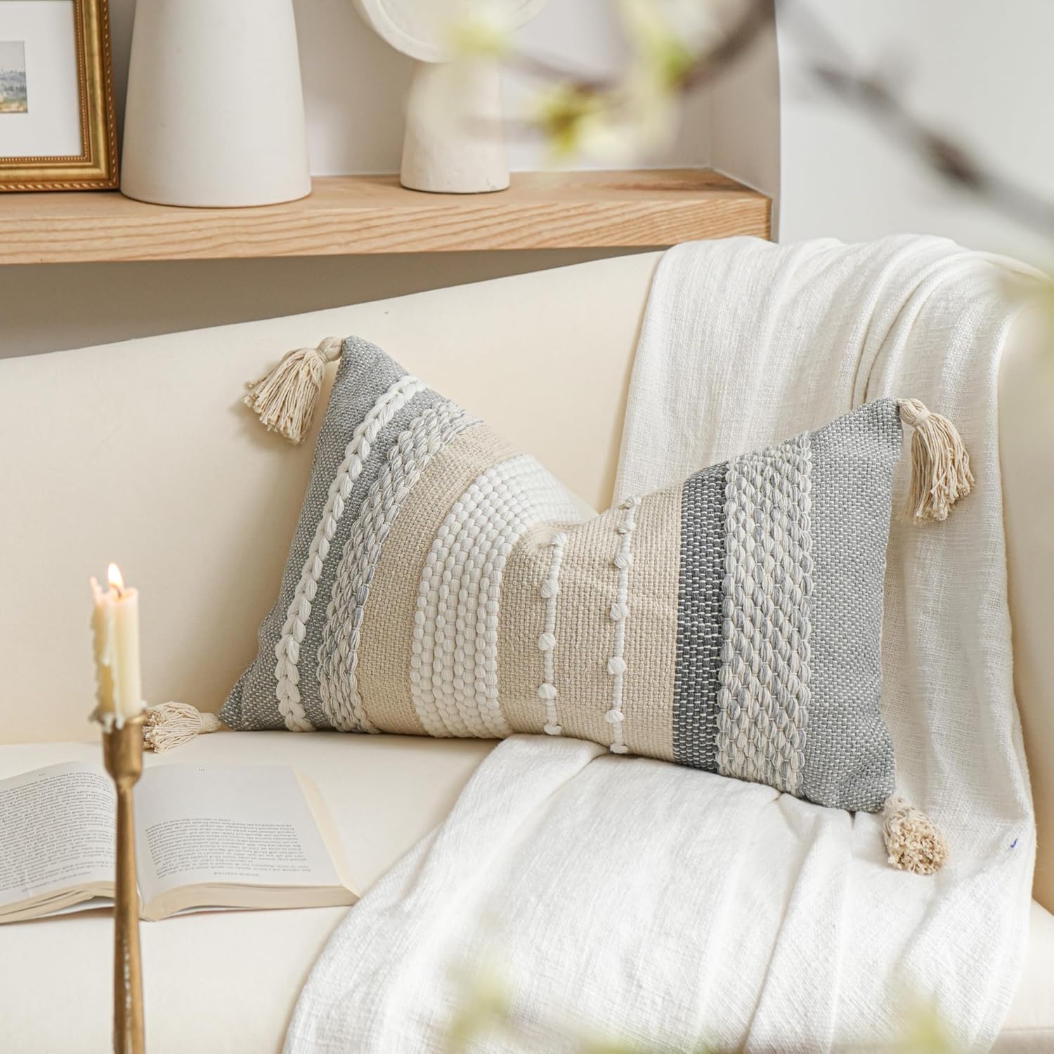 Blue Boho Decorative Throw Pillow Cover 20x20