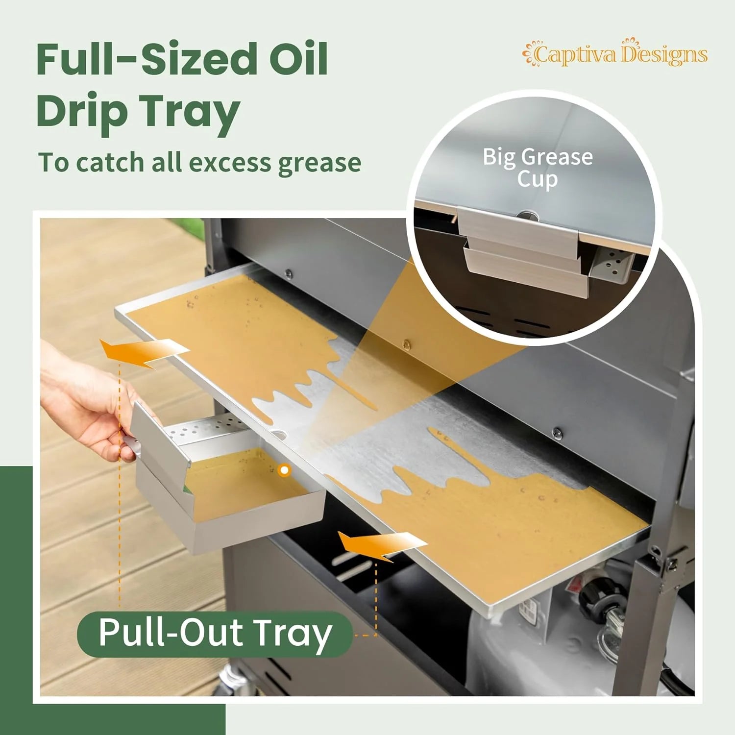 - ššš¬š² ššØ šš„ššš§: The fullsize pullout oil drip tray design allows the grease and residue collected effectively during the cooking, keeping the grill clean. Moreover, the pullout design makes the cleaning process easy and quick. Just pull the tray out gently, pour out the grease, clean and put it back in place. Not only convenient and practical, but also ensures the longterm use effect and maintenance of the appearance of the barbecue grill