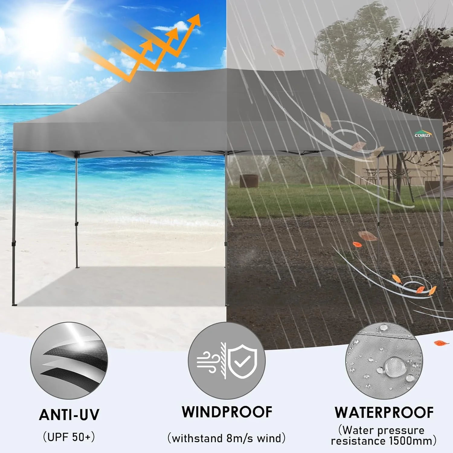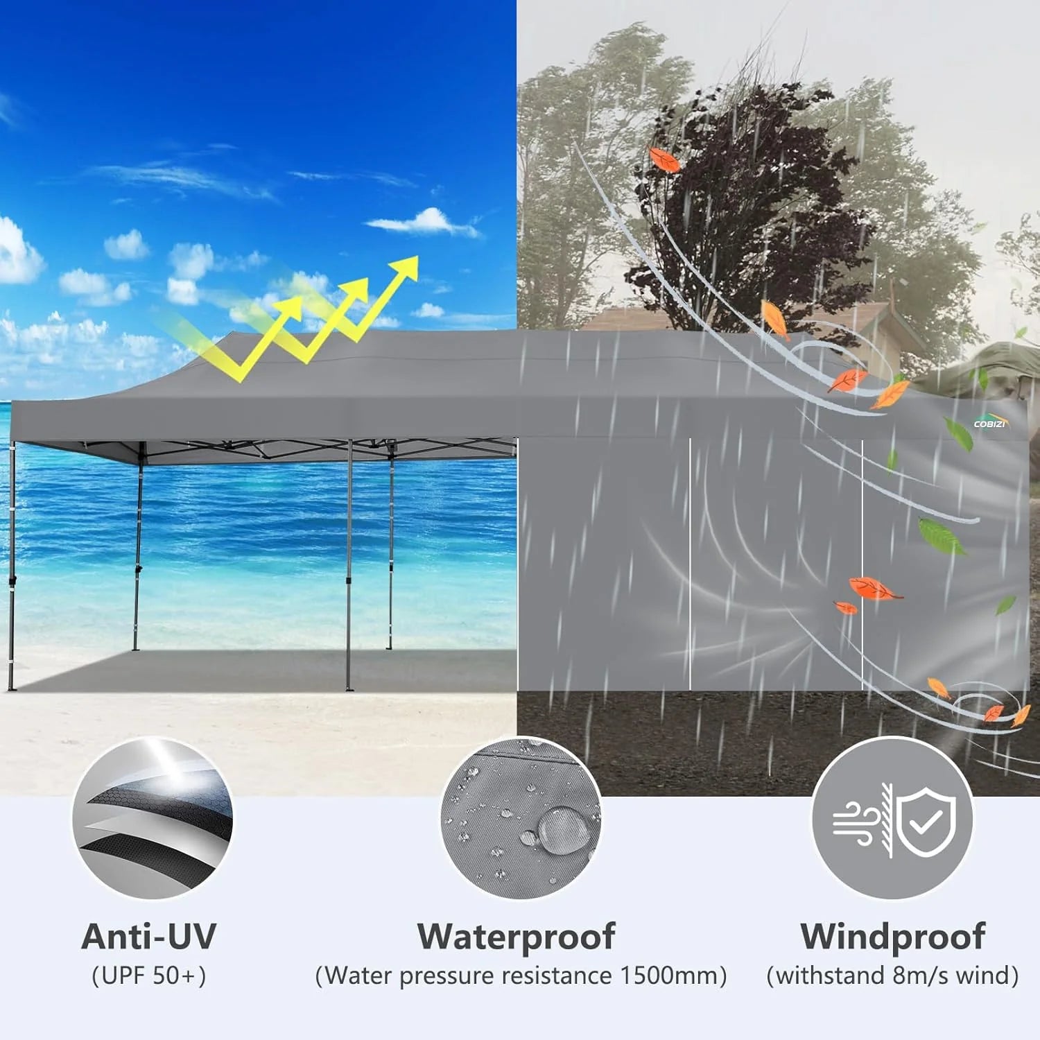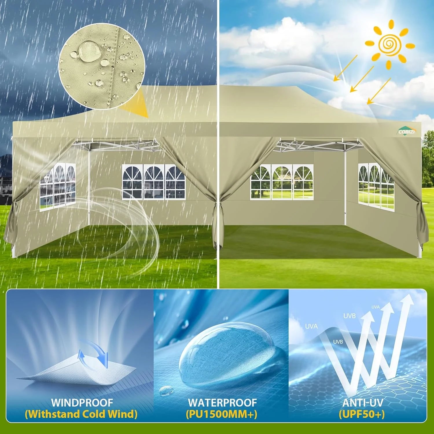 COBIZI 10x20 Pop up Heavy Duty Party Tent—Large Space & Waterproof Upgrade 2.0