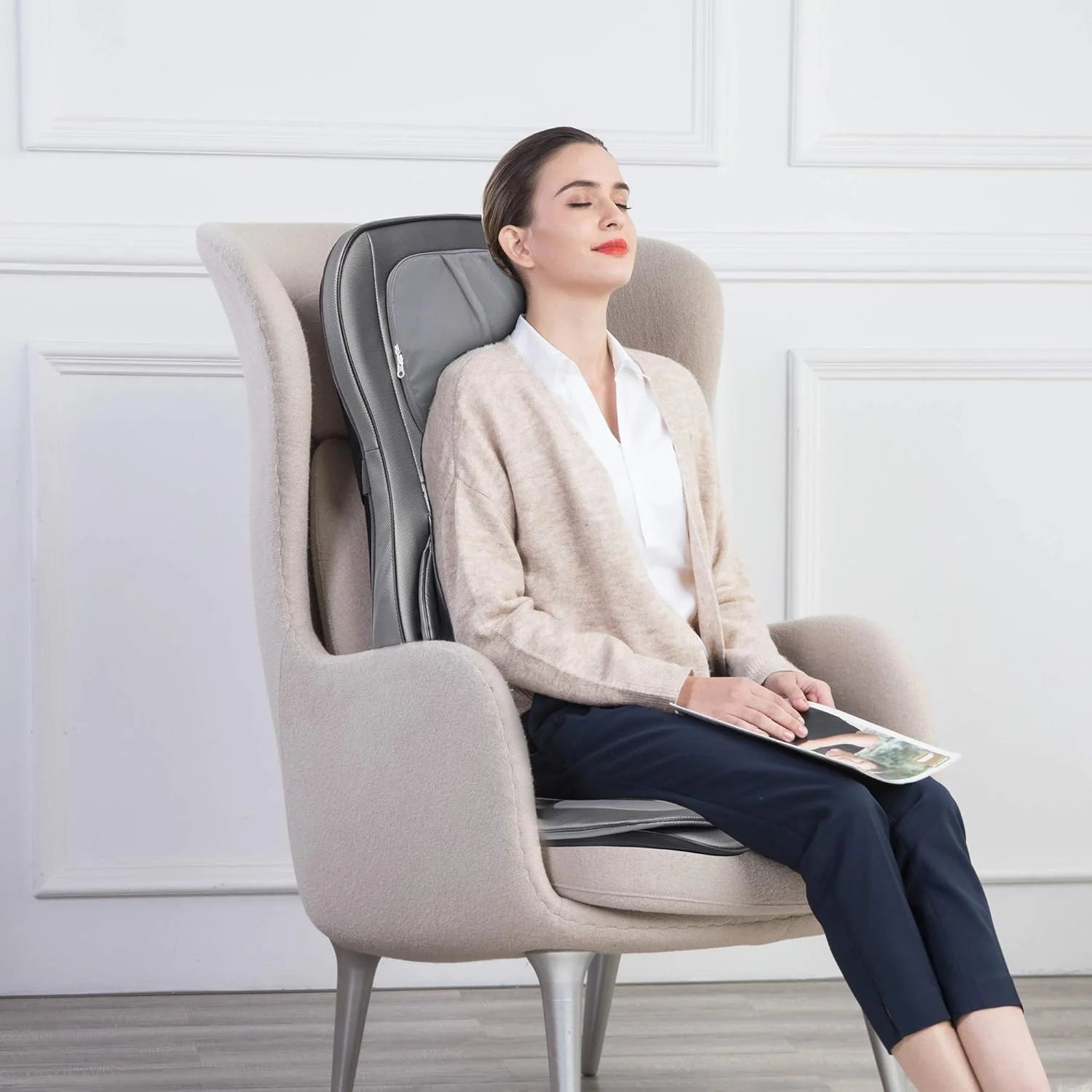 This massage chair pad provides relaxing massage on neck, shoulder, back, waist, thighs, effectively alleviate fatigue, stress and soreness.