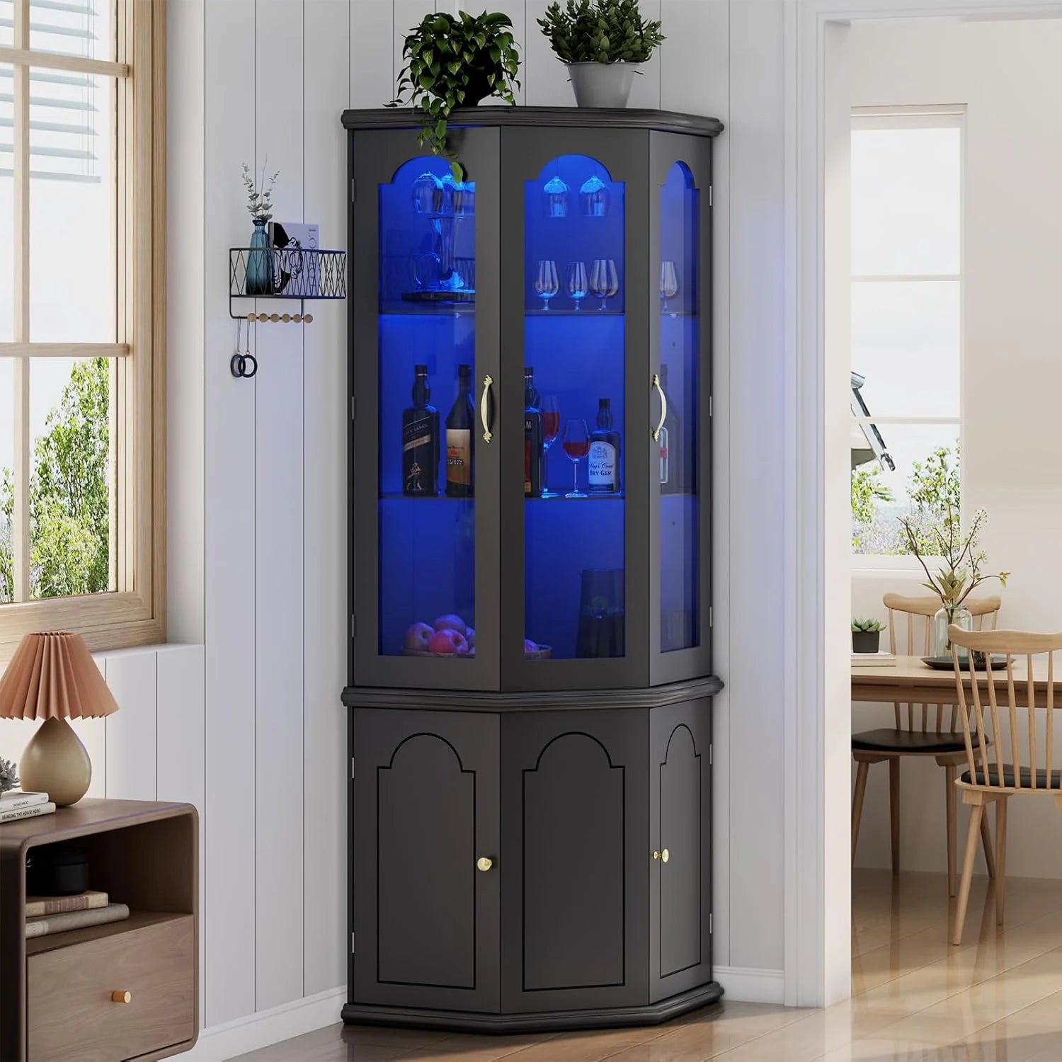 Corner wine cabinet with LED lights, tall modern wine cabinet, home bar wine storage cabinet