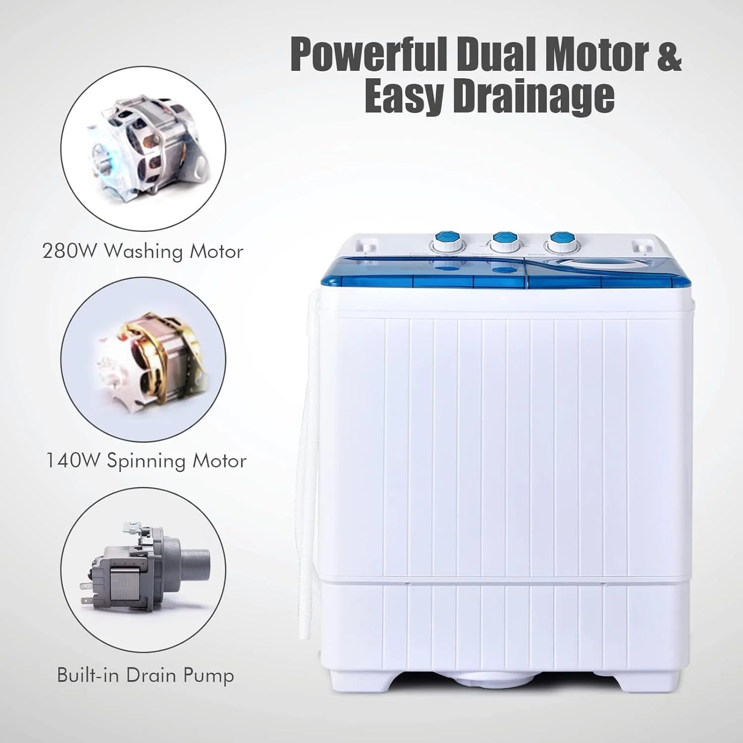 COSTWAY Double Tub 26 lb Capacity Laundry 18 lb 8 lb Spin Combo with Timer Knob Built-in Drain Pump Small Portable Washing Machine
