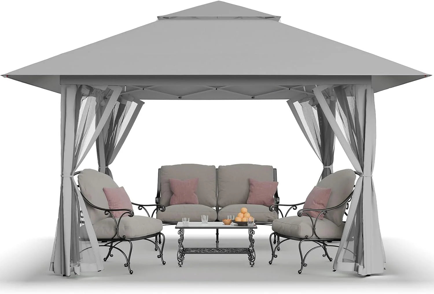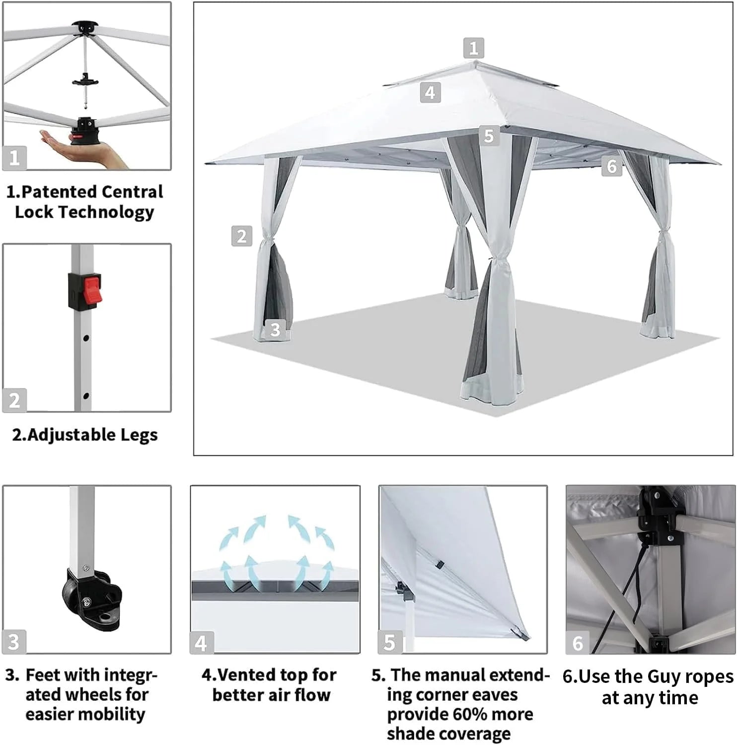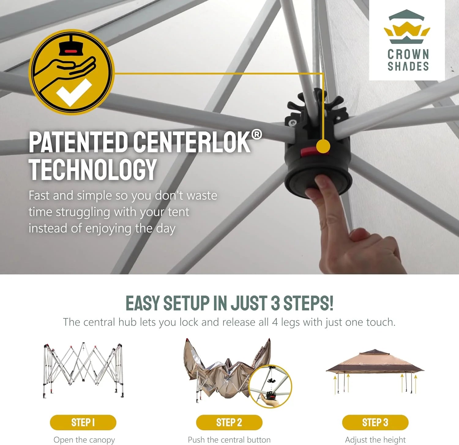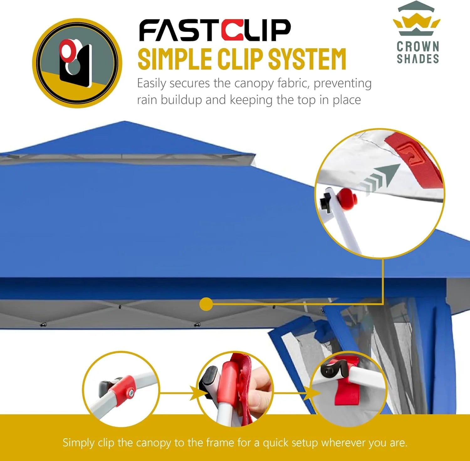 CROWN SHADES 13x13 Pop Up Gazebo, Canopy Tent, Gazebos on Clearance - Outdoor Gazebo for Backyard & Patio Furniture - Carpa Pop Up Tent with Wheeled STO-N-Go Cover Bag (White)