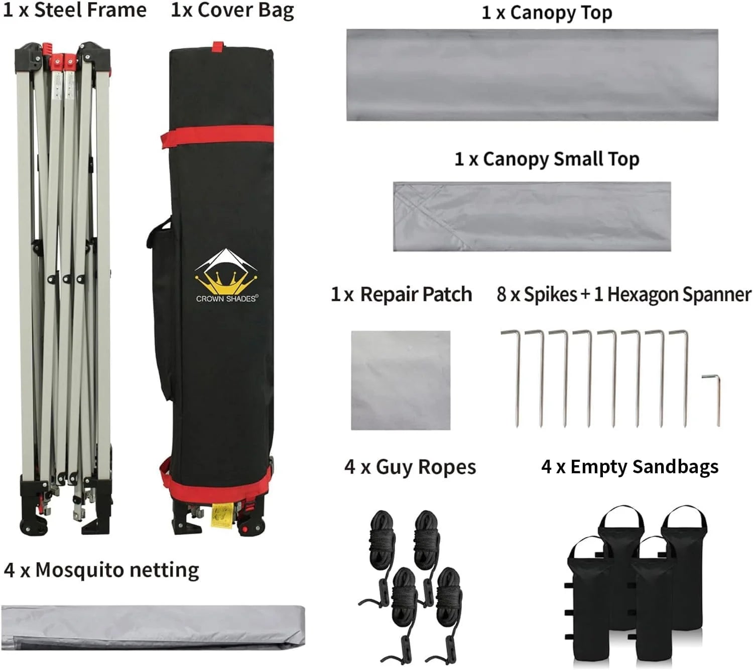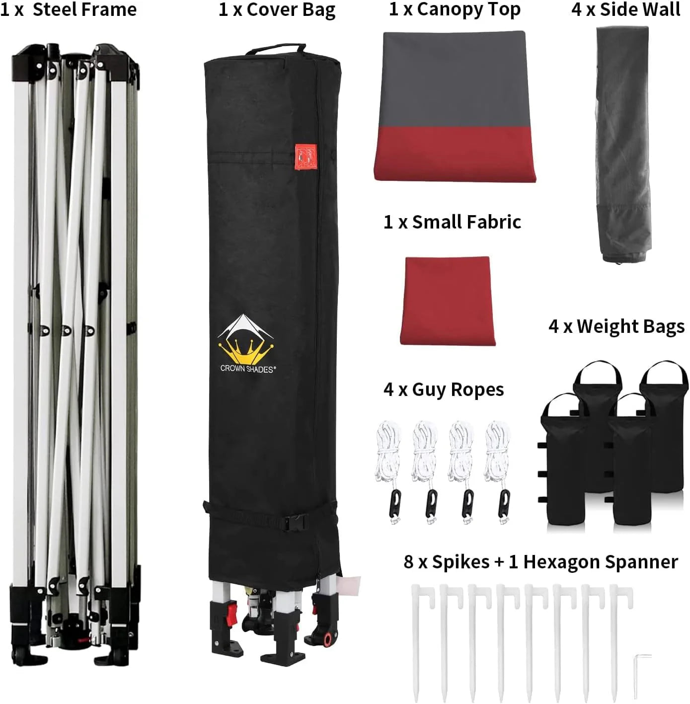 - [OUR PROMISE]: Experience our amazing customer service! We are here to support your canopy. We are available around the clock to help correct any problems or questions you might have with our Crown Shades products. Please note that our products are designed for daily use to protect from the sun and light rain. Please fully anchor your canopy to the ground to avoid damage.