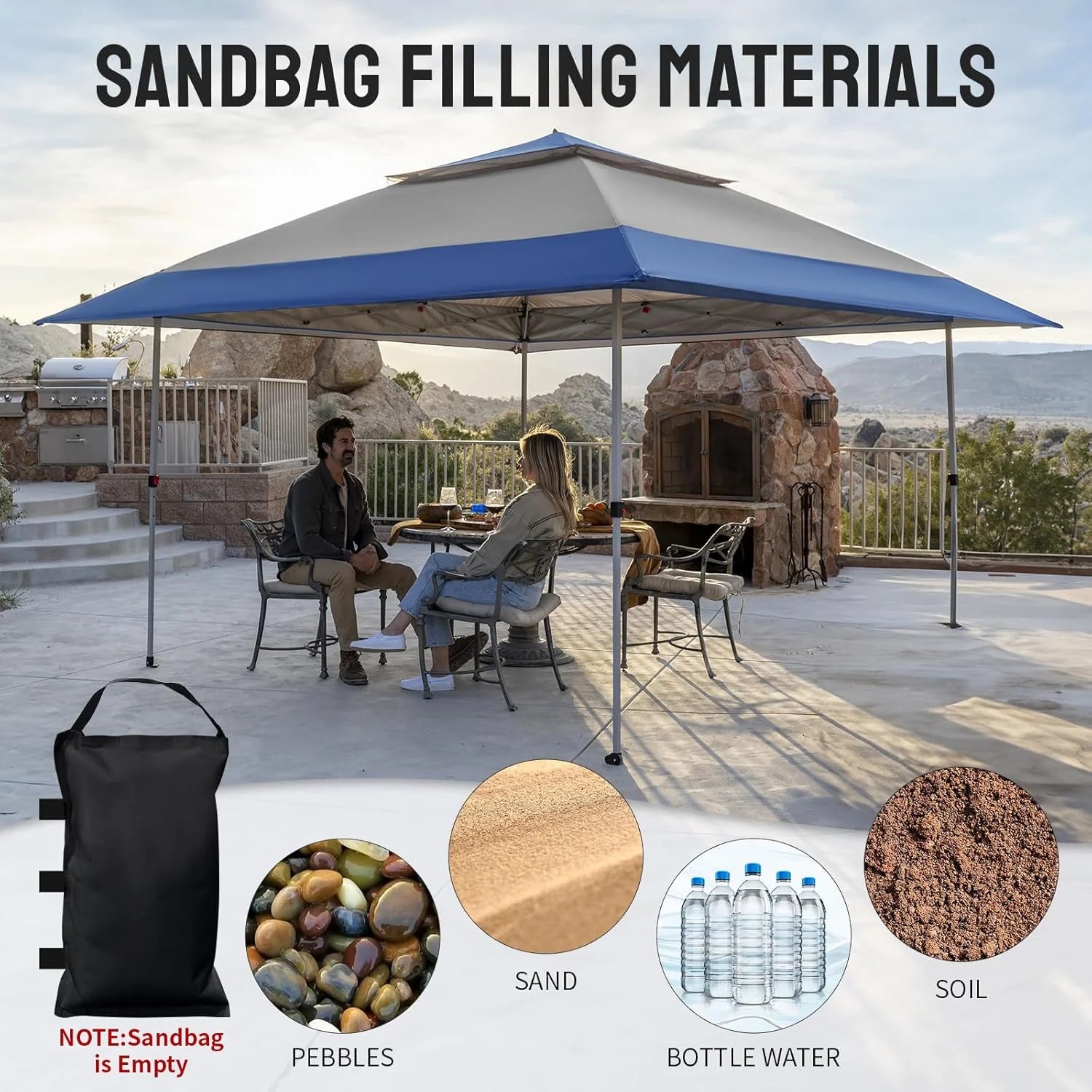 - [LARGE SPACE]: Base dimensions are 10' x 10'. Canopy dimensions are 13' x 13' with 169 square feet of shade. Over 9’ maximum interior height, and over 6’ maximum clearance under the valance. Plenty of standing room, and 14 people can sit comfortably in the cool shade.