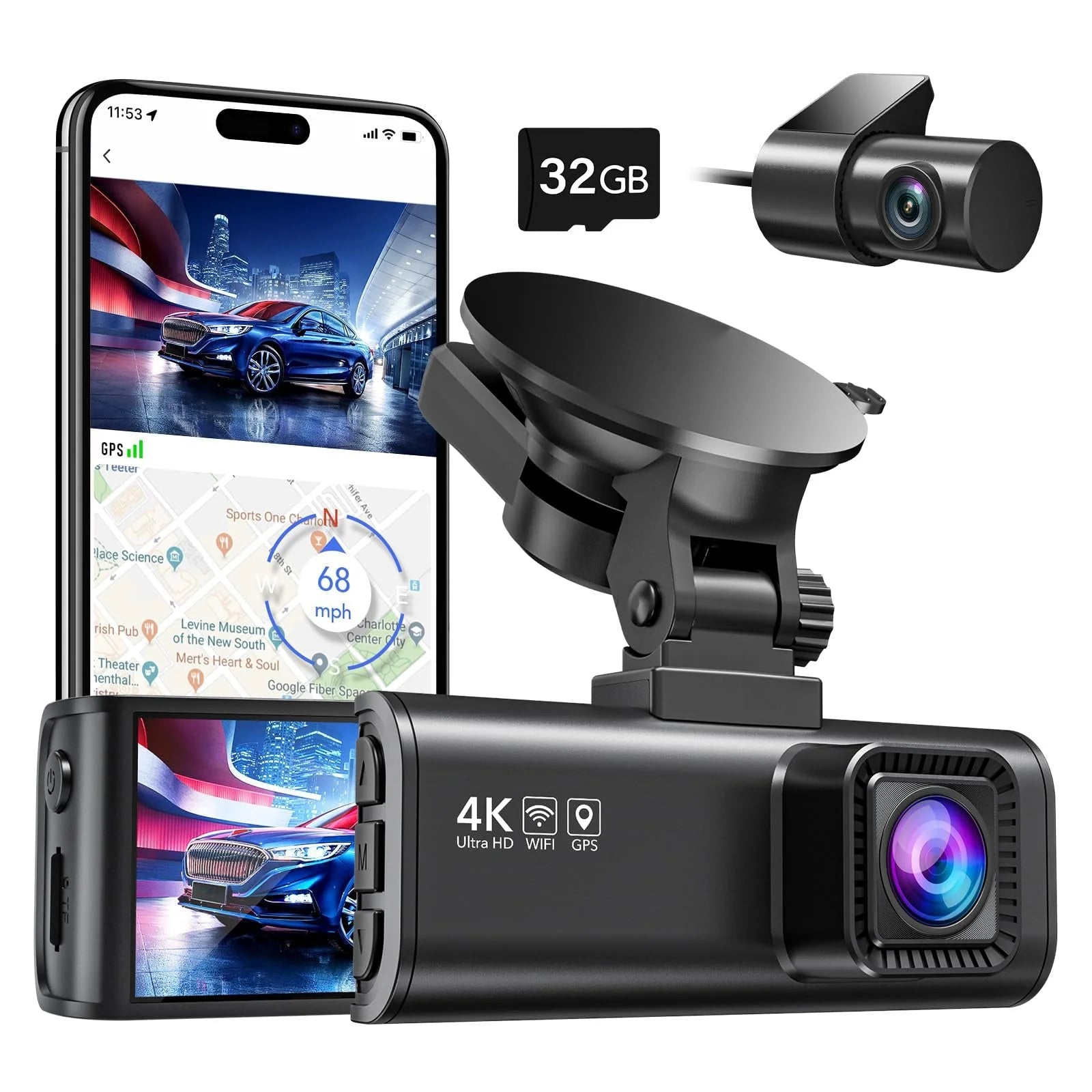 Dash Cam Front Rear, 4K/2.5K Full HD Dash Camera for Cars, Free 32GB