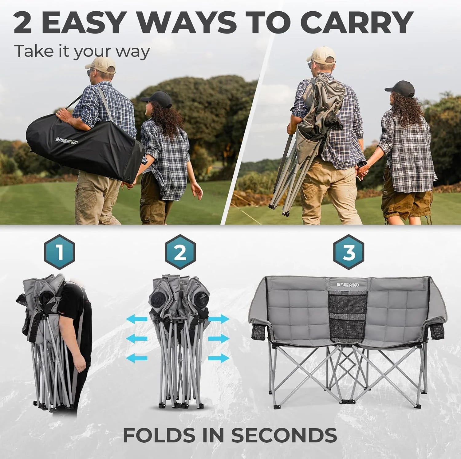 Double Camping Chair with Cooler 3-Person Folding Extra Large Camping Chair with 1000-Pound Load Capacity