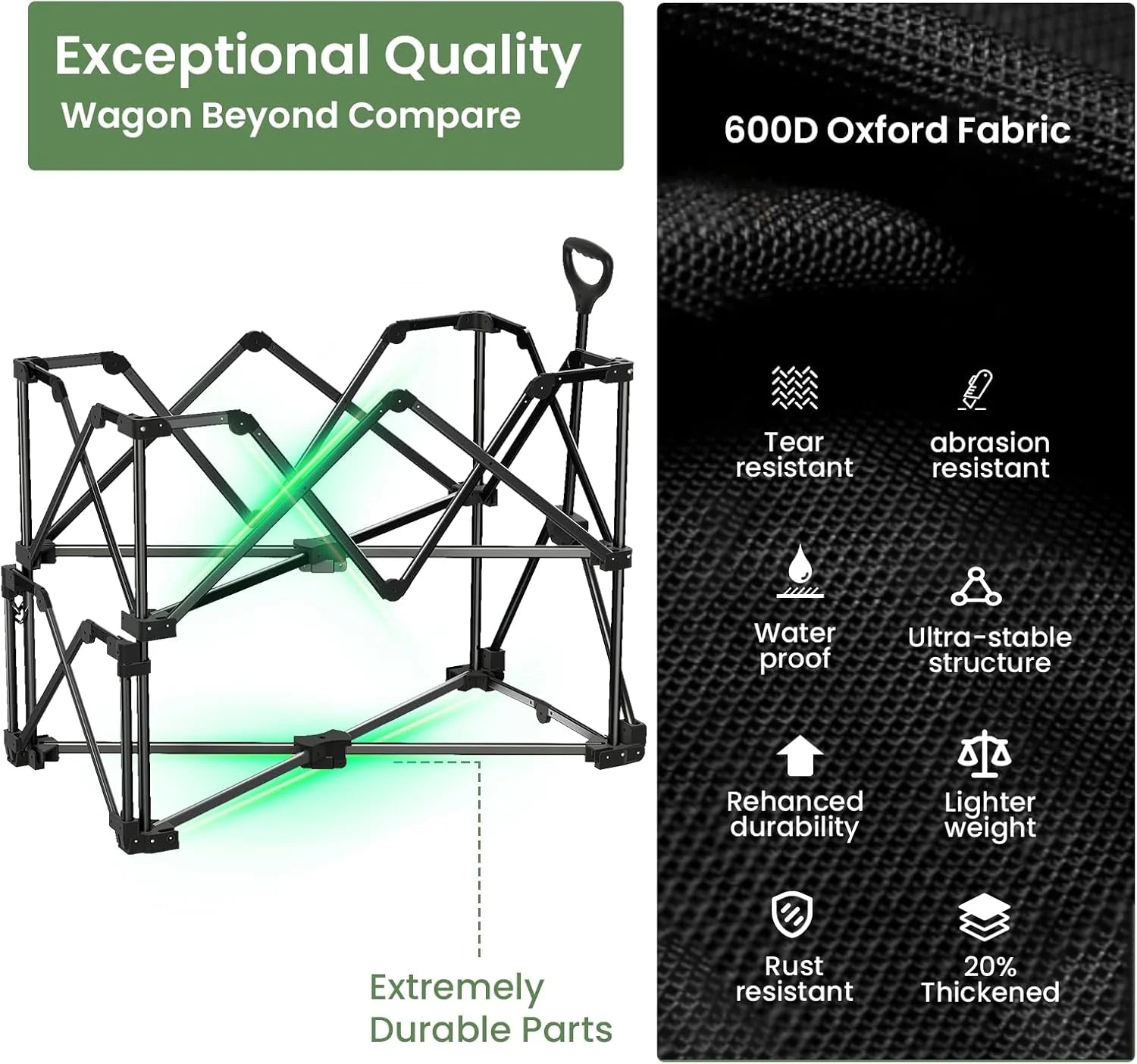Double-decker cart, 500 lb capacity, 400 liter foldable cart, all-terrain wheels, 46" extra-long extension cart, foldable cart