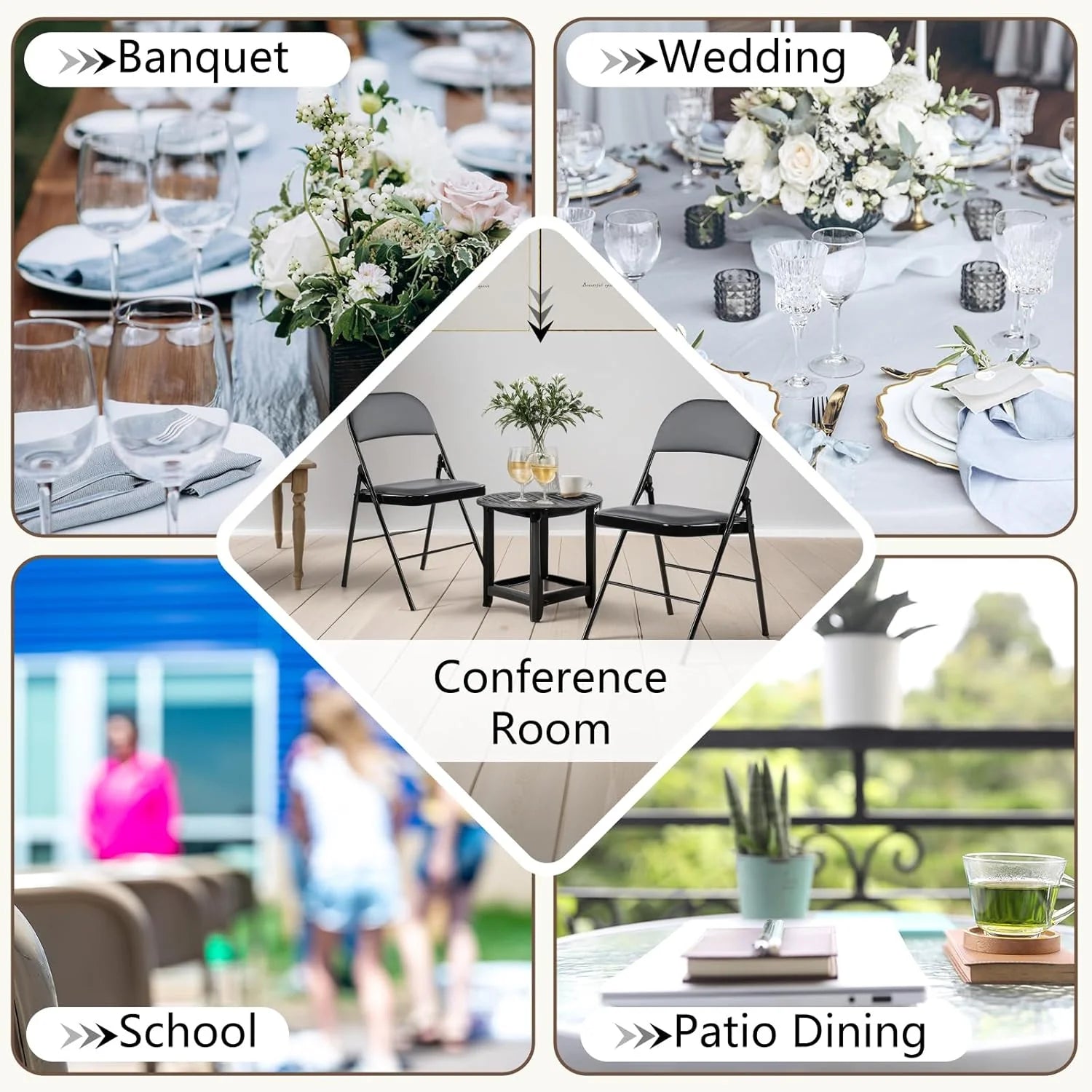 DUMOS 2 Pack Leather Padded Folding Chair, Indoor Outdoor Portable Stackable Commercial Seat