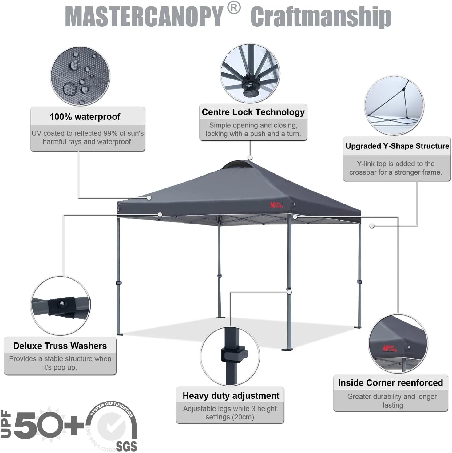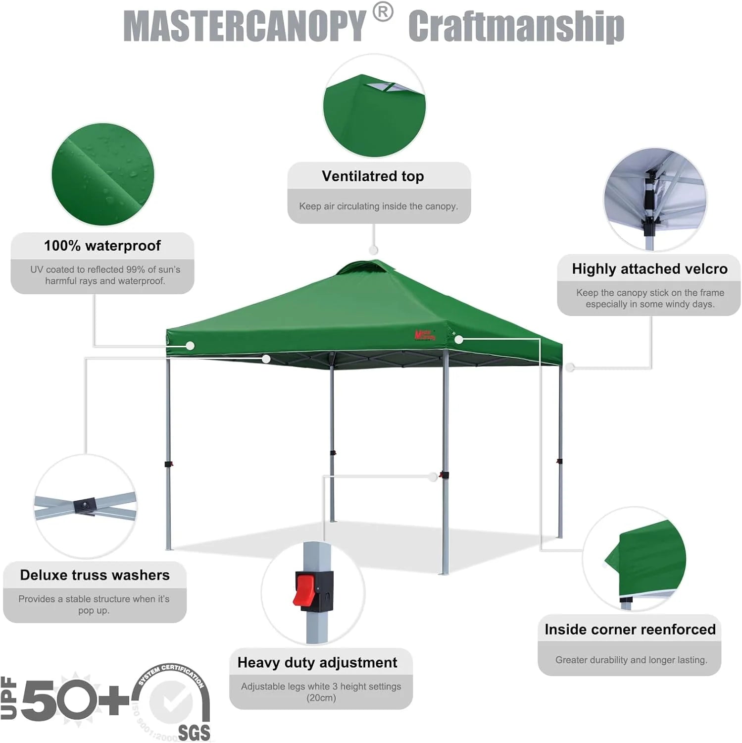 - Upgraded Frame: Modern and durable design. Conducive for ventilation and cooling with vent on the roof. Strong and durable with upgraded steel frame construction, reinforced stress points where peak poles meet, and plastic parts. All these make the pop up canopy last long.
