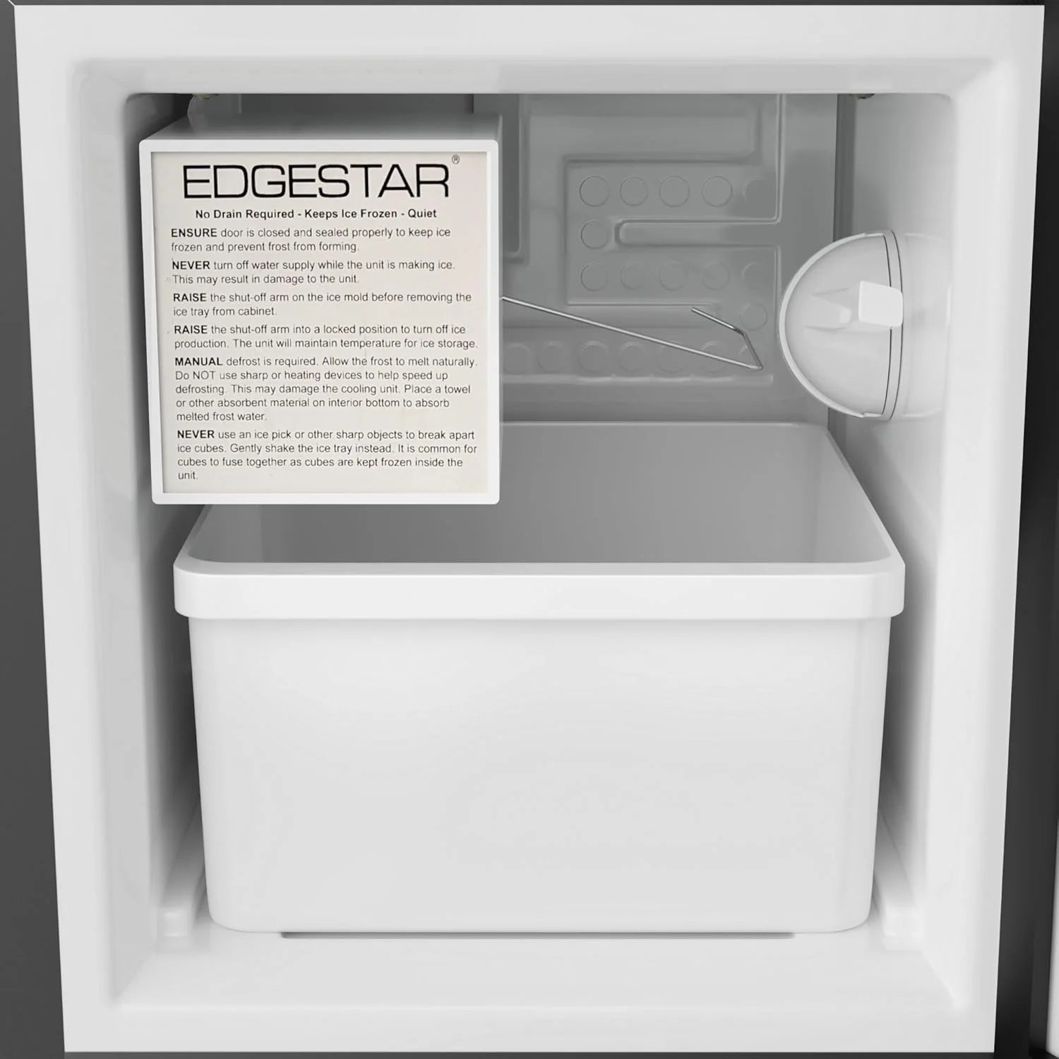 Features: Capable of producing 15 Lbs of ice daily Manual controls are easy to use This unit produces crescent shaped ice Daily Ice Production: This compact unit can squeeze into your boat or RV while also pumping out up to 15 lbs of ice per day Attractive Design: The stainless steel door and black body are a great fit in any décor Easy Installation: A removable ice reservoir holds up to 6 lbs. of ice and makes installation a snap Easy Operation: A straightforward on/off switch activates the production of ice and once full, the unit will shut itself off Keeps Ice Frozen: This ice maker stands out from the rest since it is also a functioning freezer so that no drain is required since your ice doesn't melt Convenient Height: At 25 inches high, this unit fits well under your existing countertop and is also ADA compliant Reversible Door: With a reversible door, the x-axis is your oyster -- choose a left or right door swing depending on your installation needs Covered under 1 year parts and 90 day labor manufacturer warranties Specifications: Storage Capacity: 12 lbs. Daily Ice Production: 15 lbs. ADA Approved: Yes Installation Type: Built-In Depth: 17" Width: 14-15/16" Height: 24-7/8" Additional EdgeStar LinksBrowse all EdgeStar Products