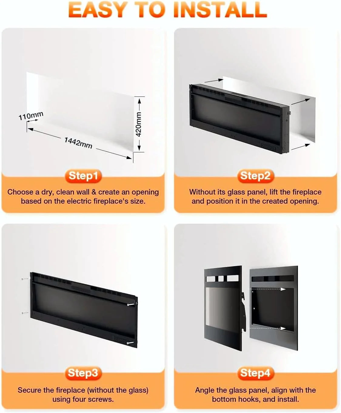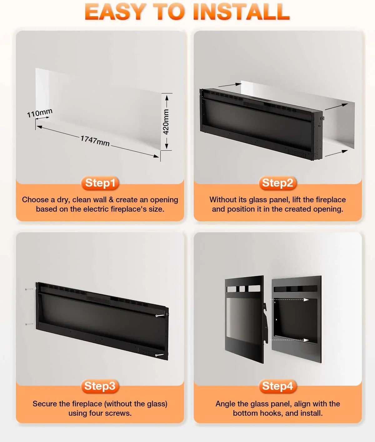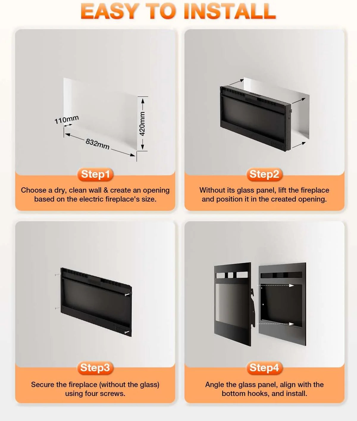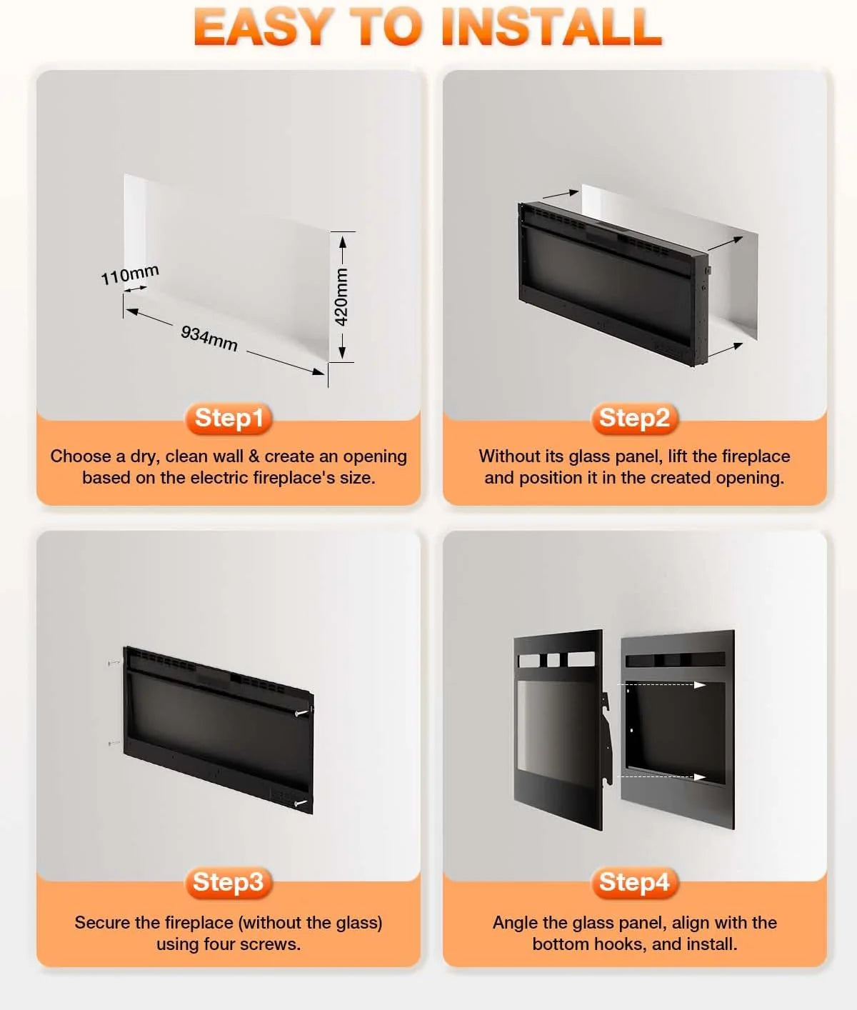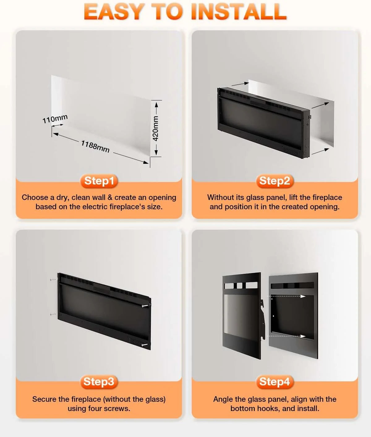 - Easy Installation: We offer various installation methods, including wall-mounted, built-in, and free-standing, to cater to different needs. The product comes with a clear instruction manual, and with simple steps, you can complete the entire installation within an hour.Then, sit back with your loved one and enjoy the lifelike flames