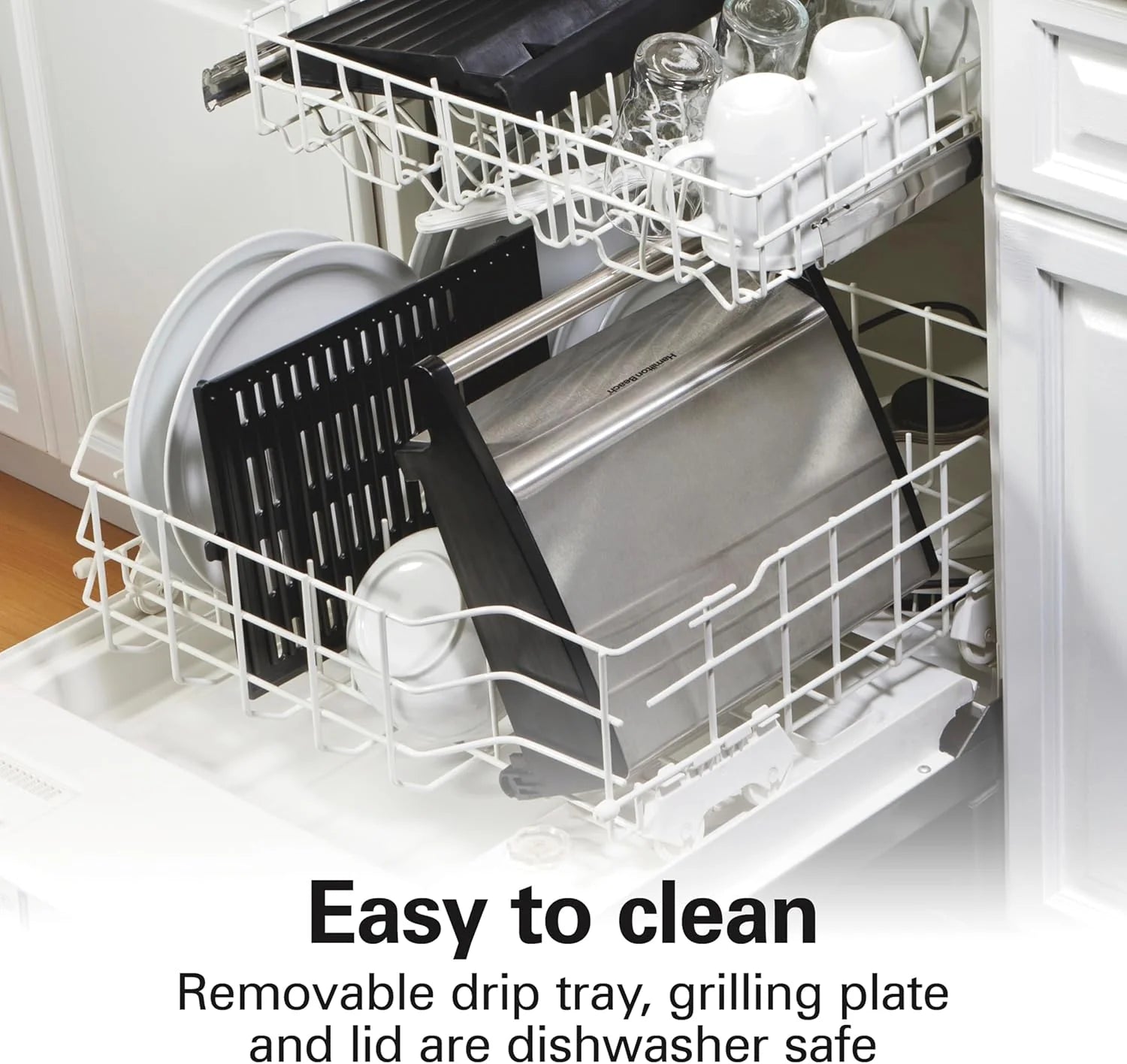 - LESS MESS WITH EXTRA-LARGE DRIP TRAY: The tray fits right underneath the cooking surface, which directs drips into the tray as you grill, catching juices before they spill. After cooking, it slides out for easy cleanup in the dishwasher.