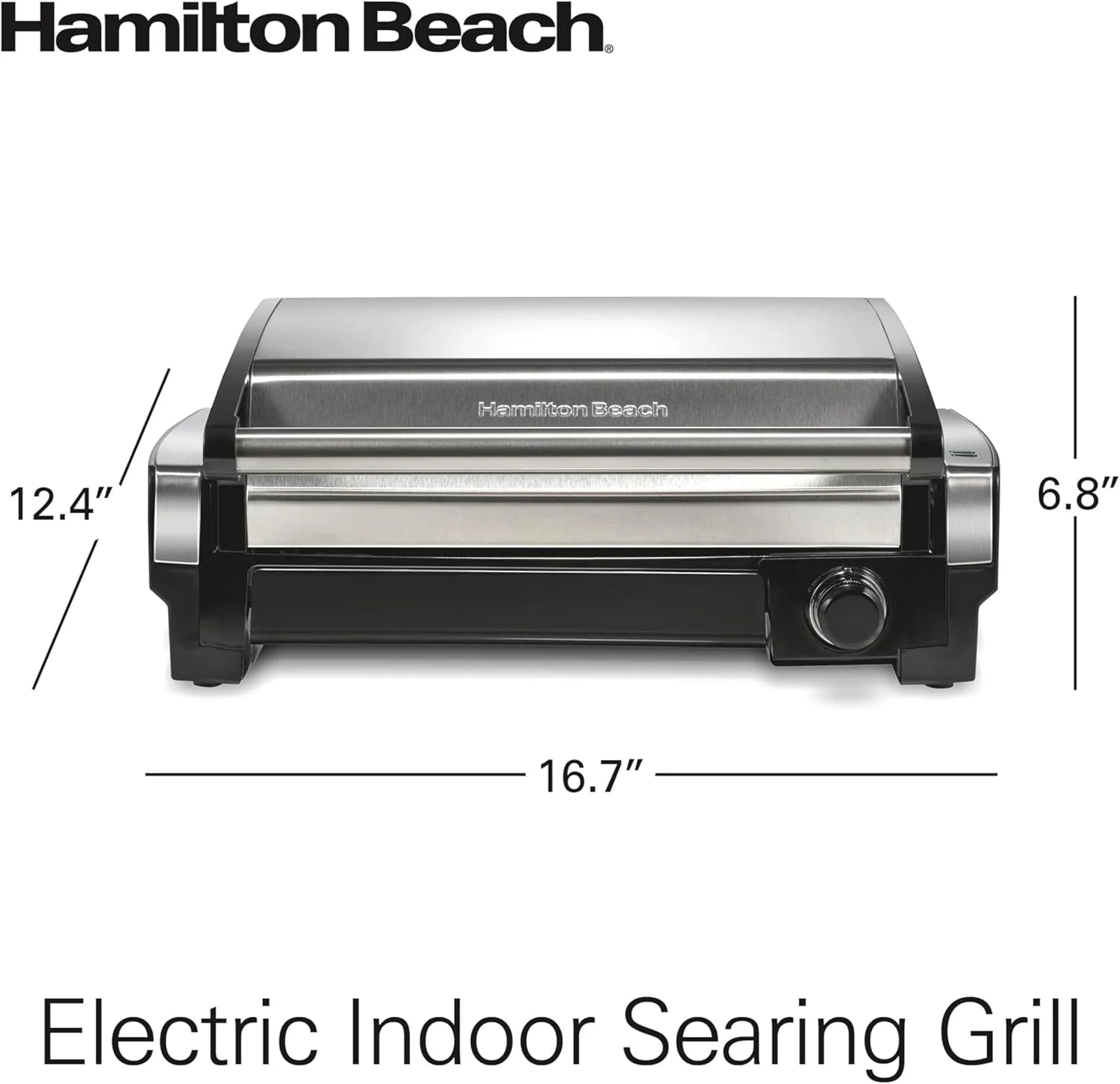 Electric Indoor Searing Grill with Viewing Window & Adjustable Temperature Control to 450F, 118 sq. in. Surface Serves 6, PFAS-Free Removable Nonstick Grate, Stainless Steel