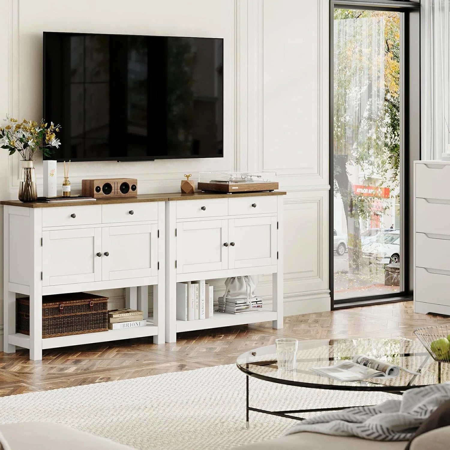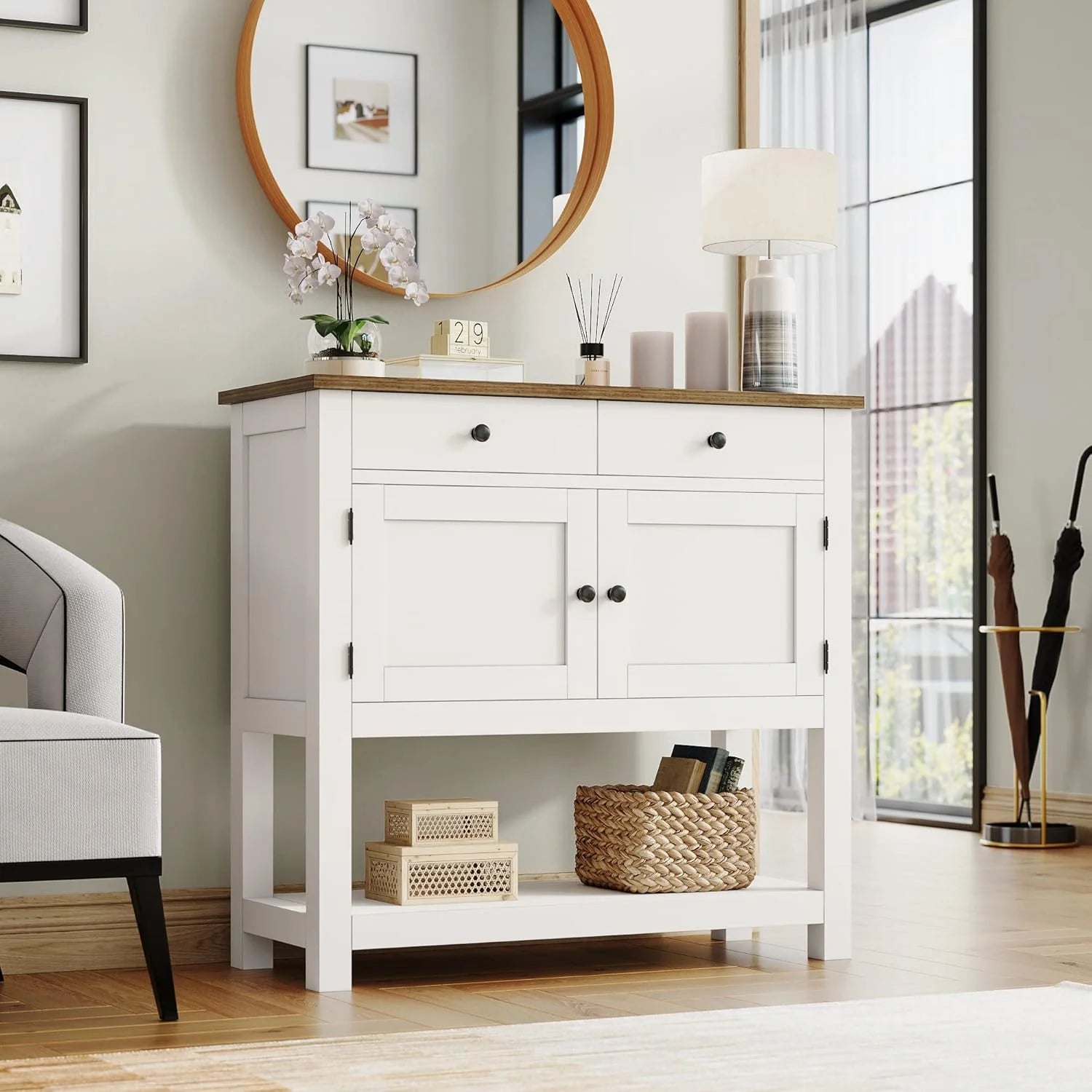 Farmhouse style console table coffee bar, entry table with storage rack, sofa table buffet sideboard