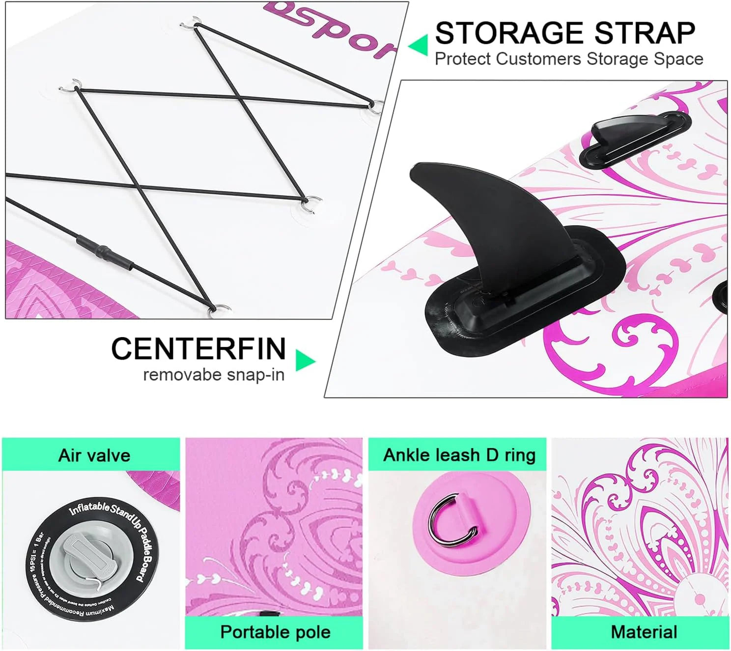 - VERSATILE PORTABLE STAND UP PADDLE BOARD - Easy storage - packing down to the carrying bag.FBSPORT pandle board can be used in different water including sea,lakes, rivers or small wavy ocean. And the sup boards is great for fishing, surfing, paddling, cruising, yoga, sightseeing in water.