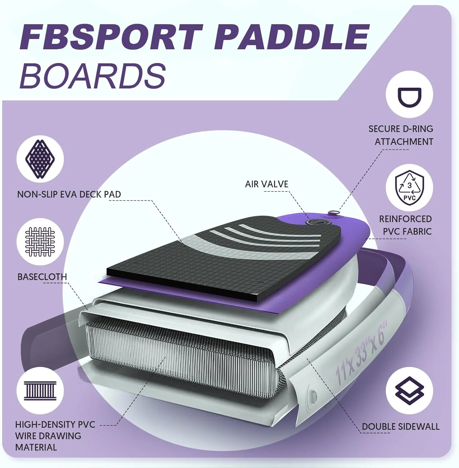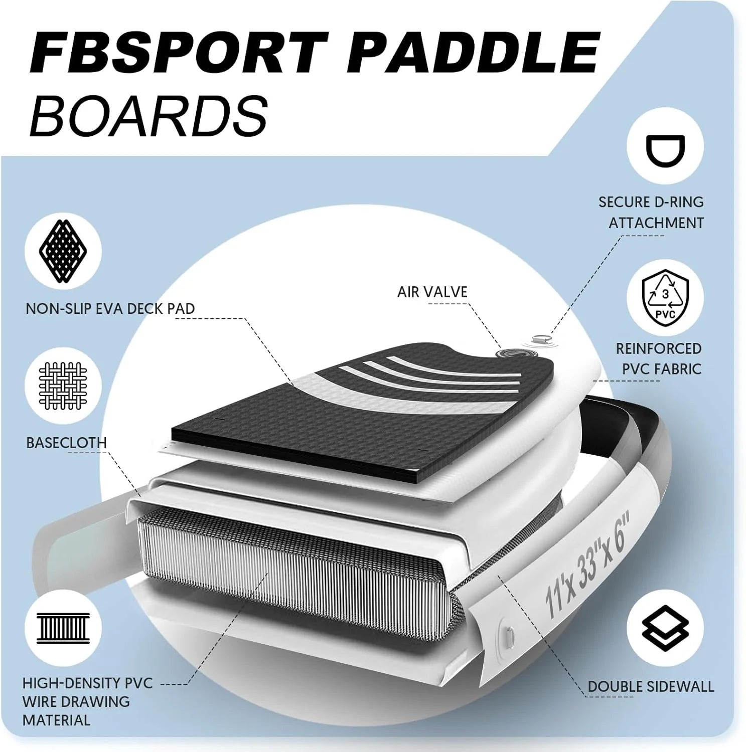 FBSPORT 11' Premium Stand Up Paddle Board, Yoga Board with Durable SUP Accessories & Carry Bag | Wide Stance, Surf Control, Non-Slip Deck, Leash, Paddle and Pump for Youth & Adult