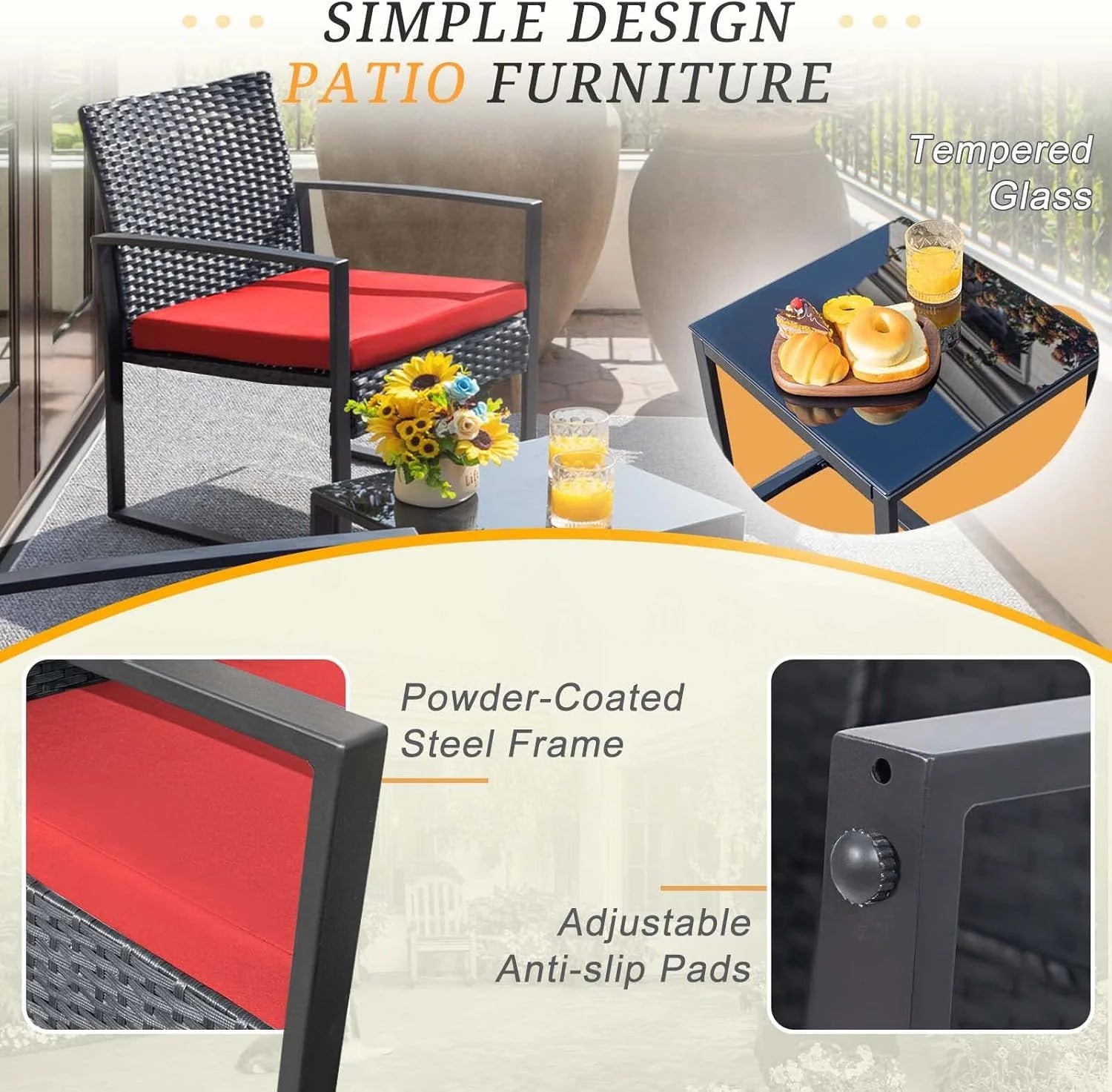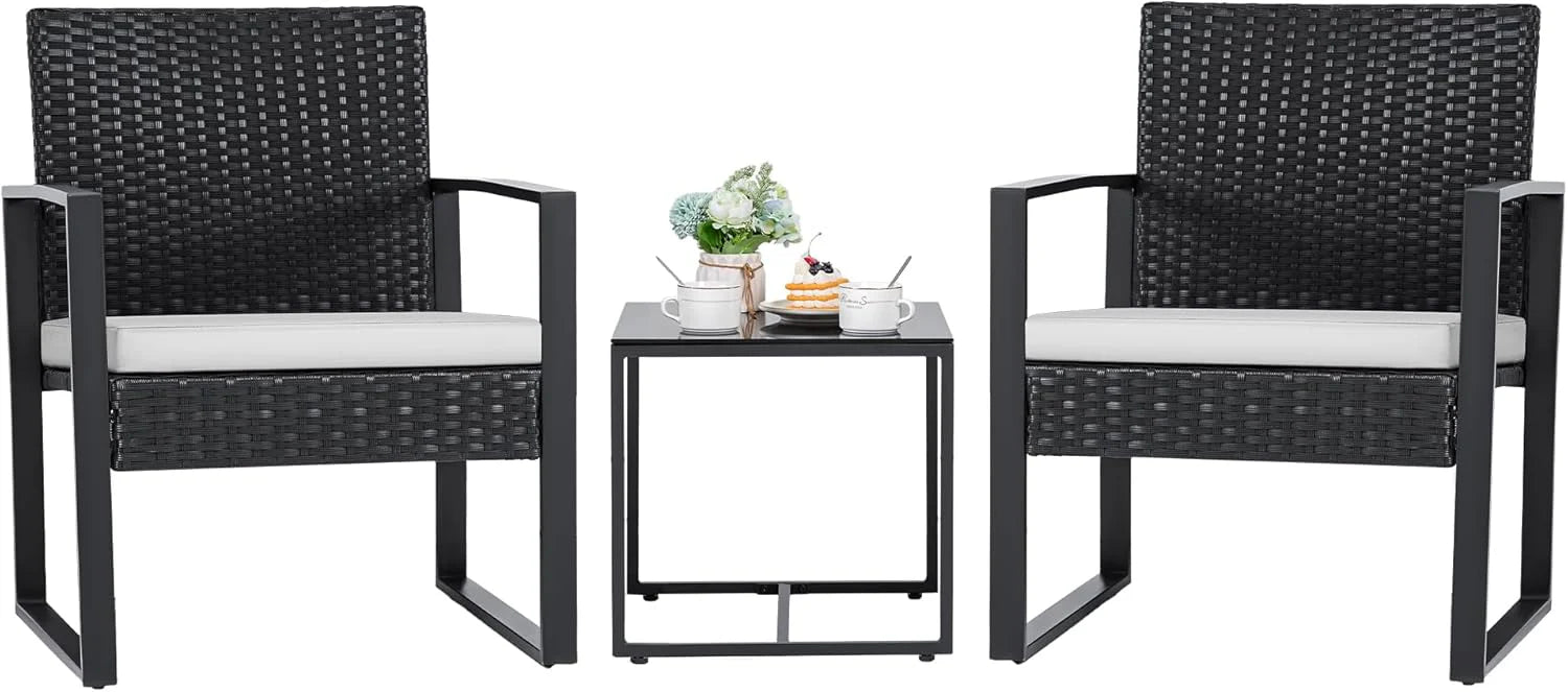Flamaker 3 Pieces Patio Set Outdoor Wicker Furniture Sets Modern Rattan Chair Conversation Sets with Coffee Table for Yard and Bistro (Black)