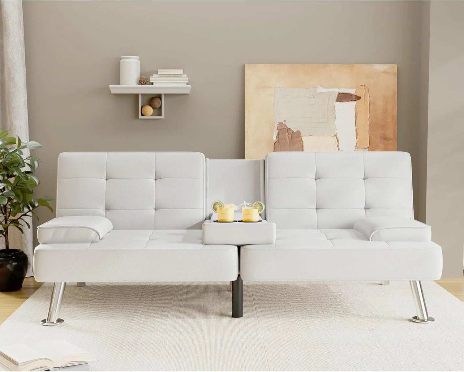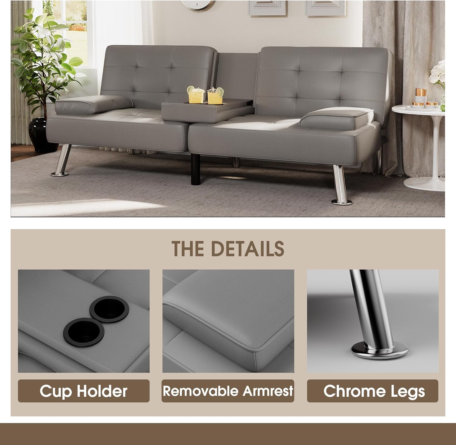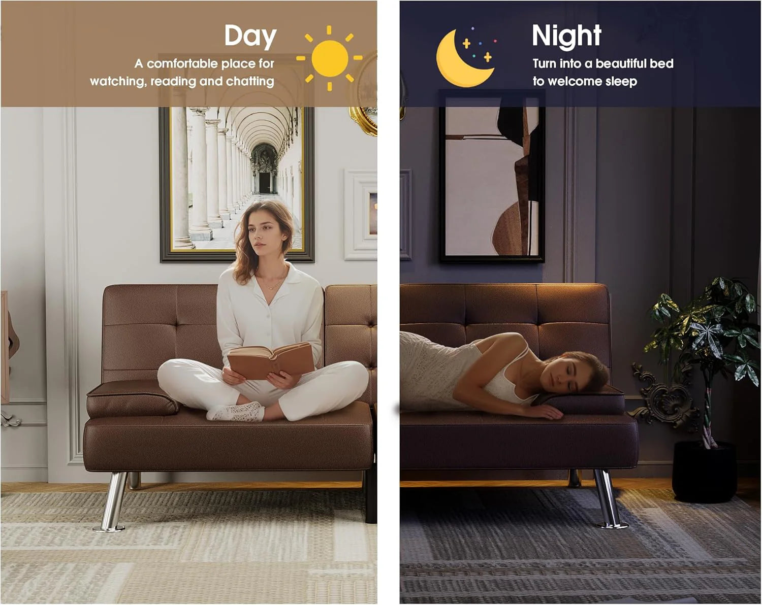 - Cozy Time: The futon couch is filled with high-resilient sponges, soft and supportive, covered by selected material, delivering relax and comfort experience just right. The 2 removable cup holders bring much convenient to get a drink when sitting in the sofa
