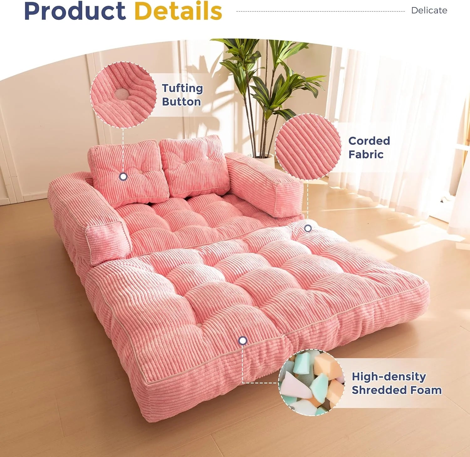 Folding Sofa Bed, L-Shaped Convertible Sofa Bed with Armrests and Pillows,