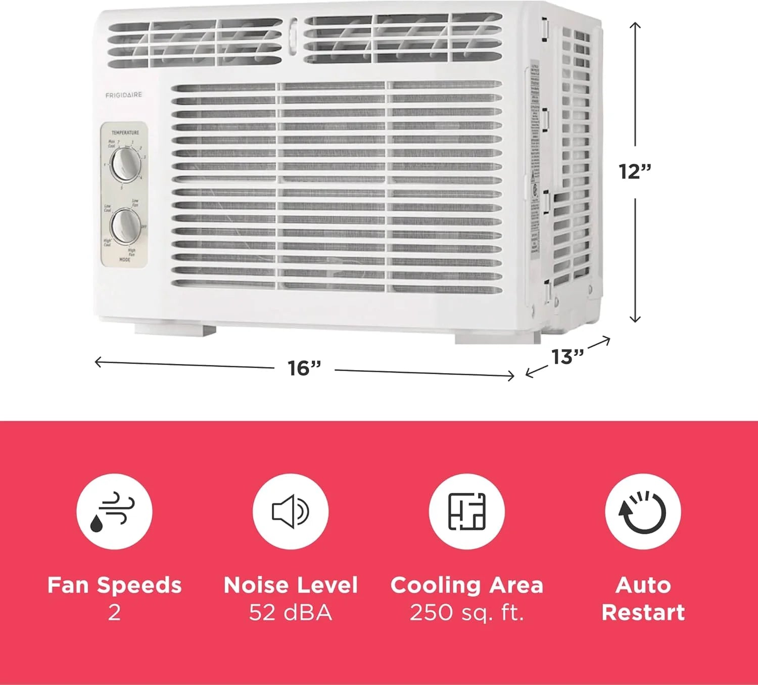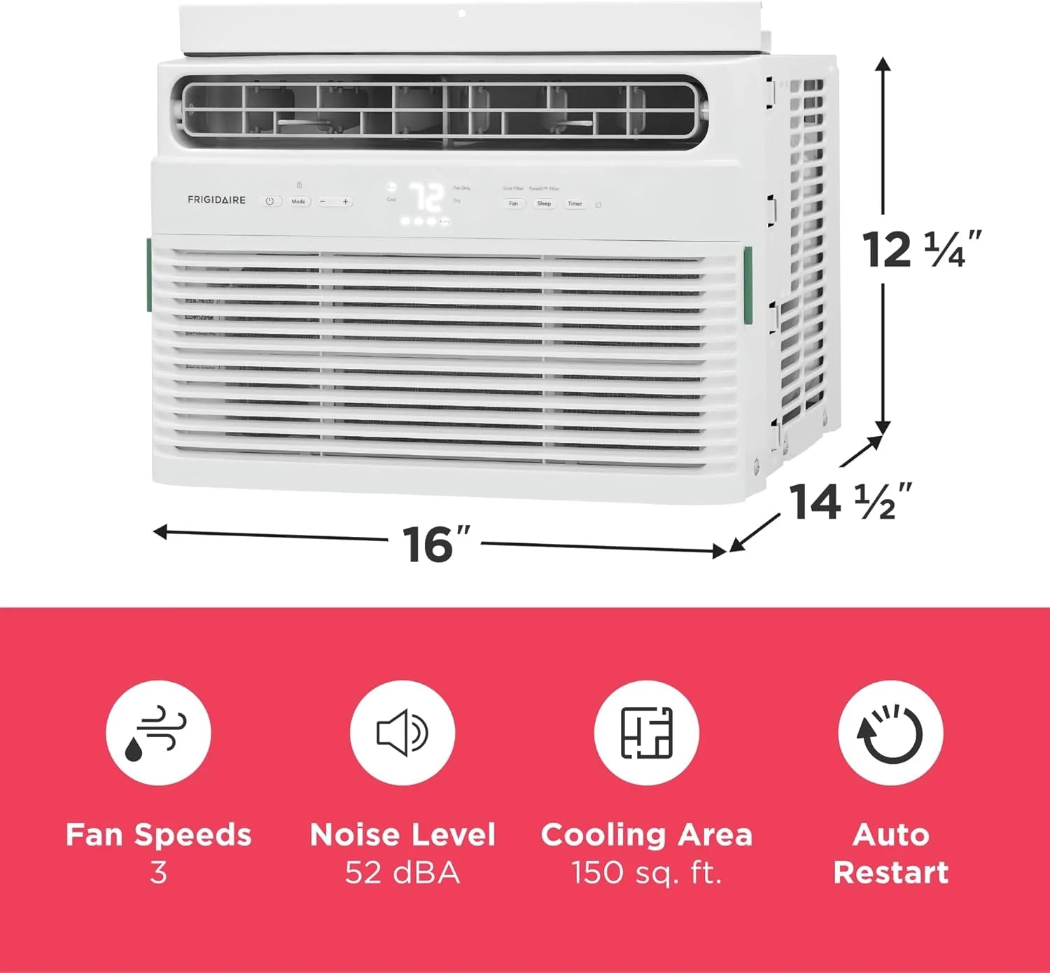 Frigidaire 5,000 BTU Window Air Conditioner with Remote Control, Cools Up to 150 Sq. Ft., Quiet Operation, Eco Mode, 3 Fan Speeds, Auto Restart, White