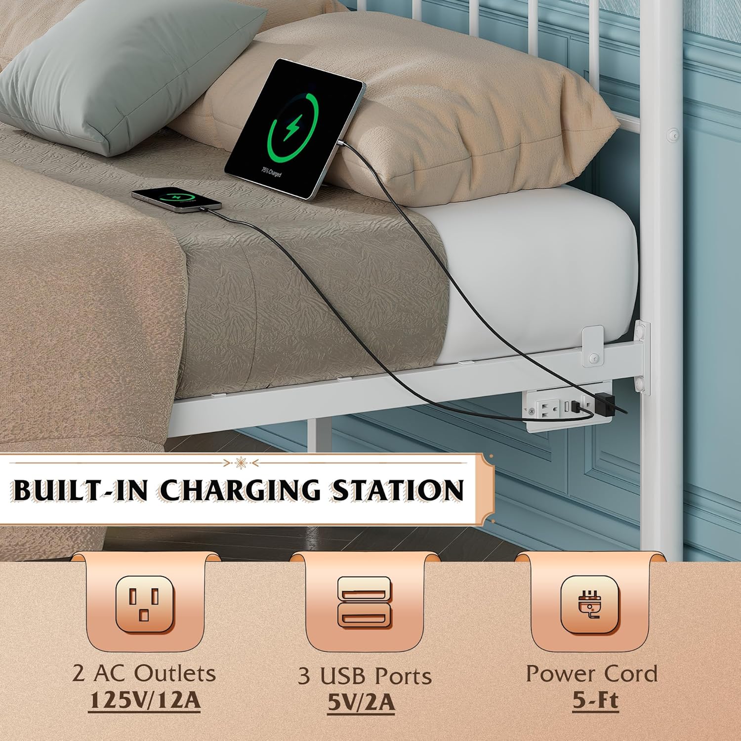 Full Size Bed Frame Full Bed Frame with LED Lights and Charging Station