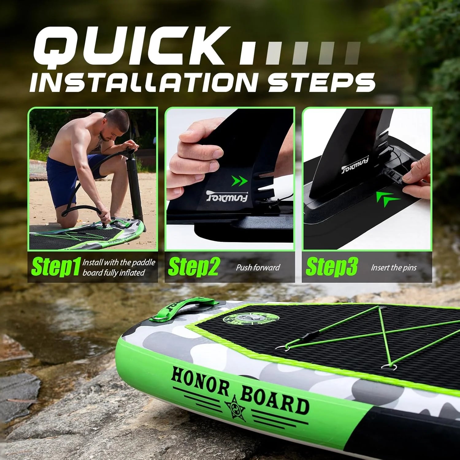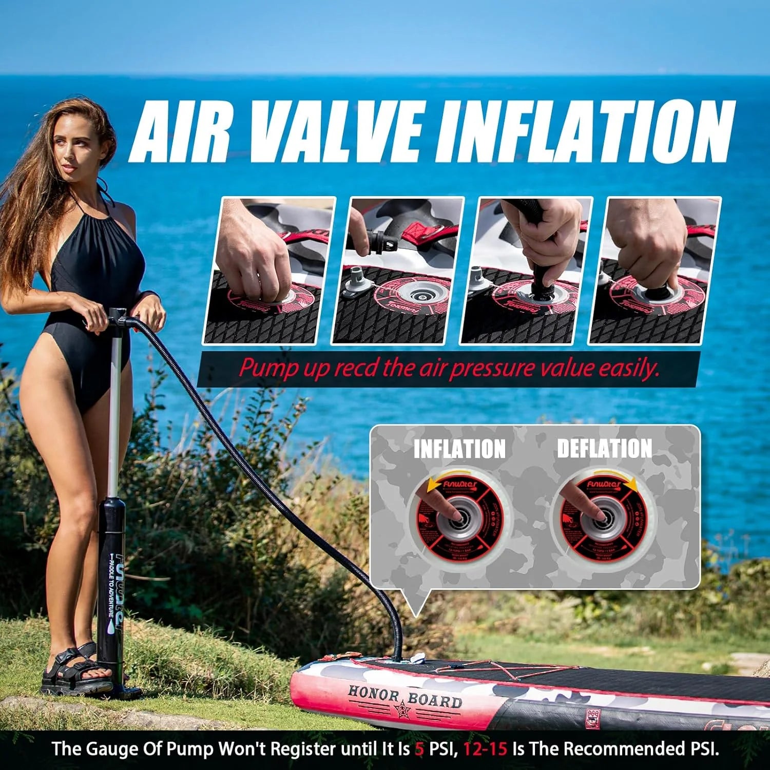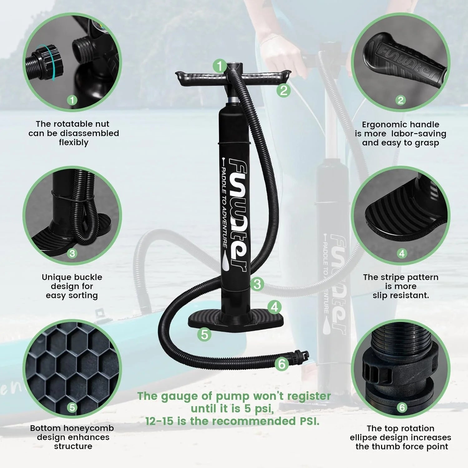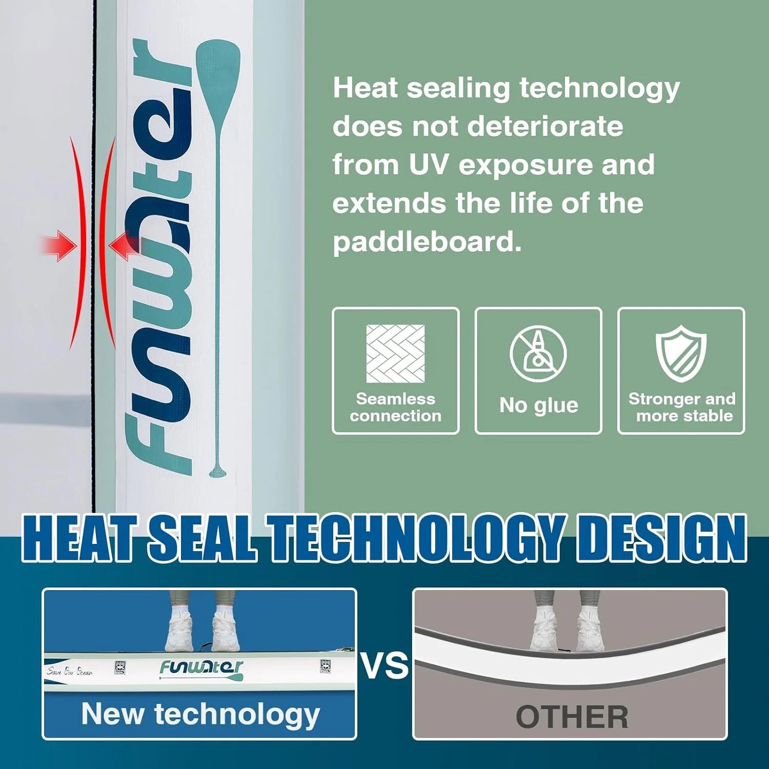 - From the design to the production process, FunWater ensures that every detail of the SUP meets high standards. Features non-slip EVA decking for excellent durability, slip resistance and comfort. The paddle board can be easily inflated and rolled up for easy storage and transport. You can bring along your children and pets, making it perfect for various activities such as yoga, fishing, and sunbathing.