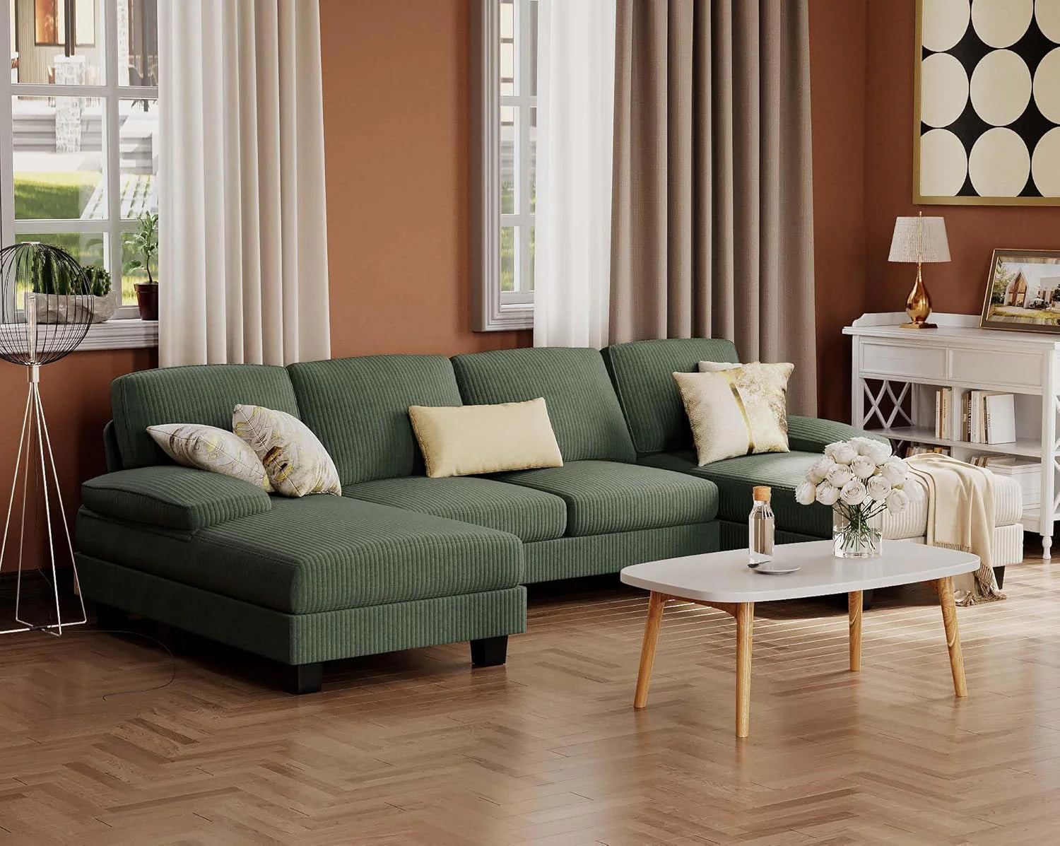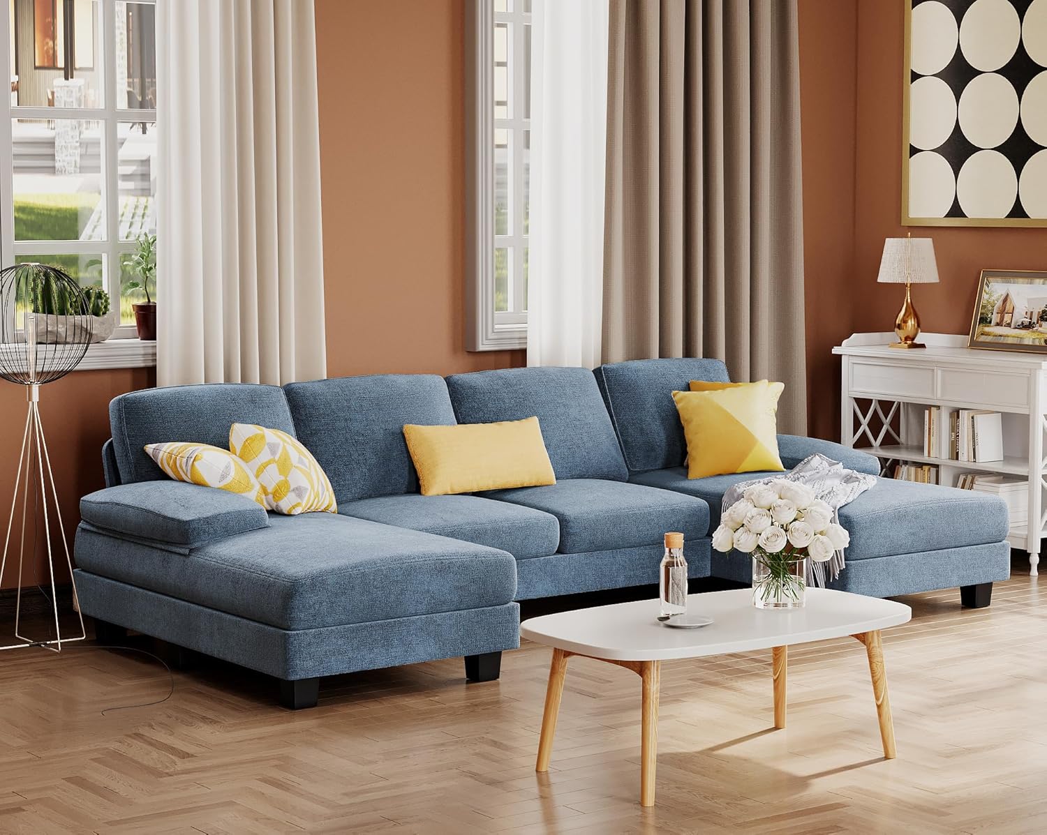 - 3 Packages: The Sectional Sofa is shipped in 3 packages, so they may be arrived separately in different time. Please be patient. And cushions are vacuum-packed, it will take 48 hours to return to its original shape.