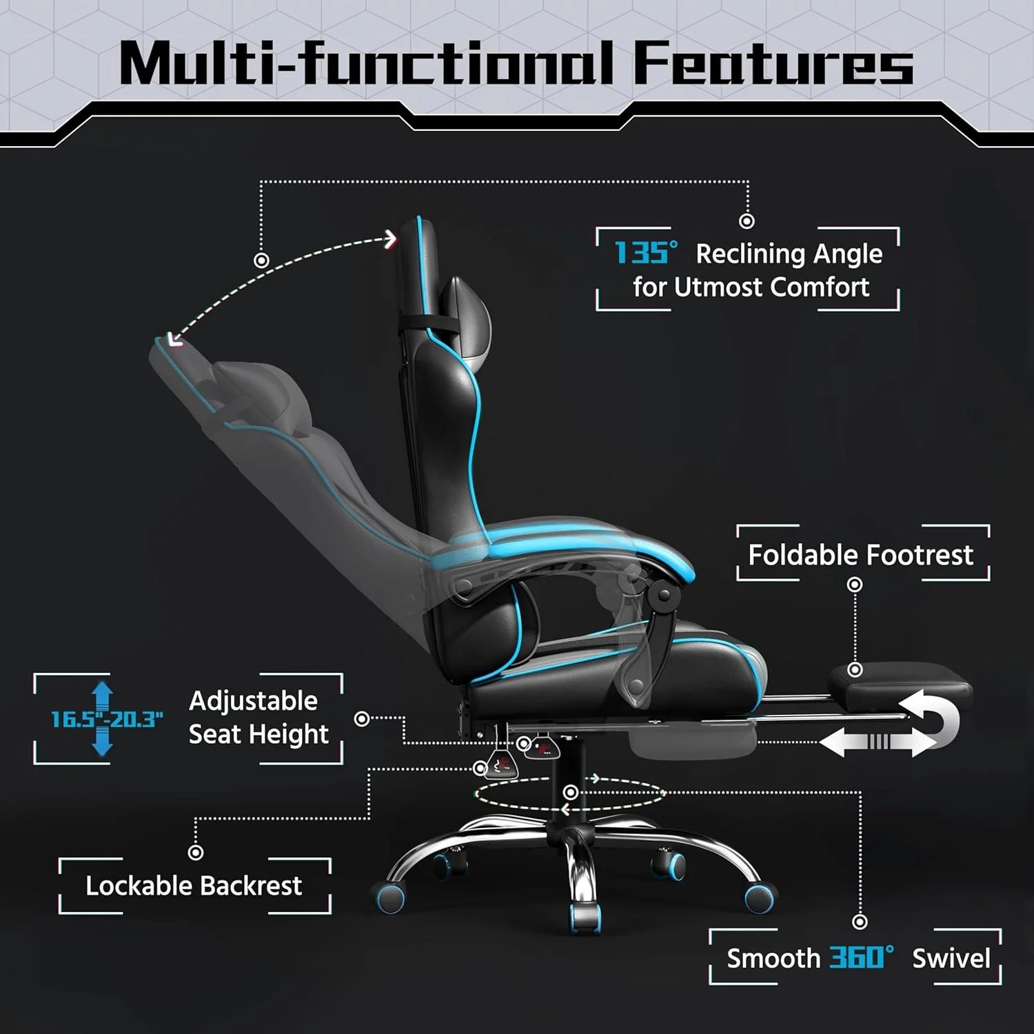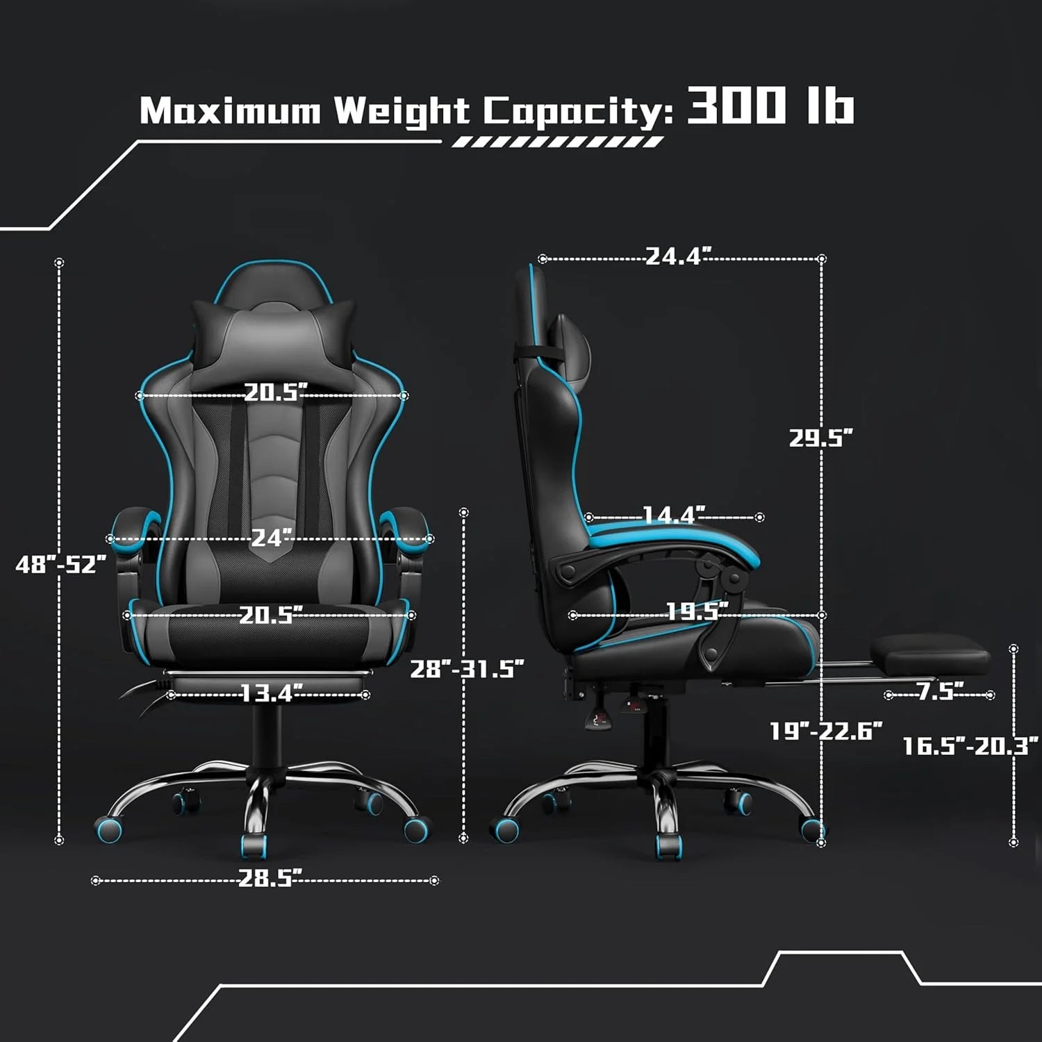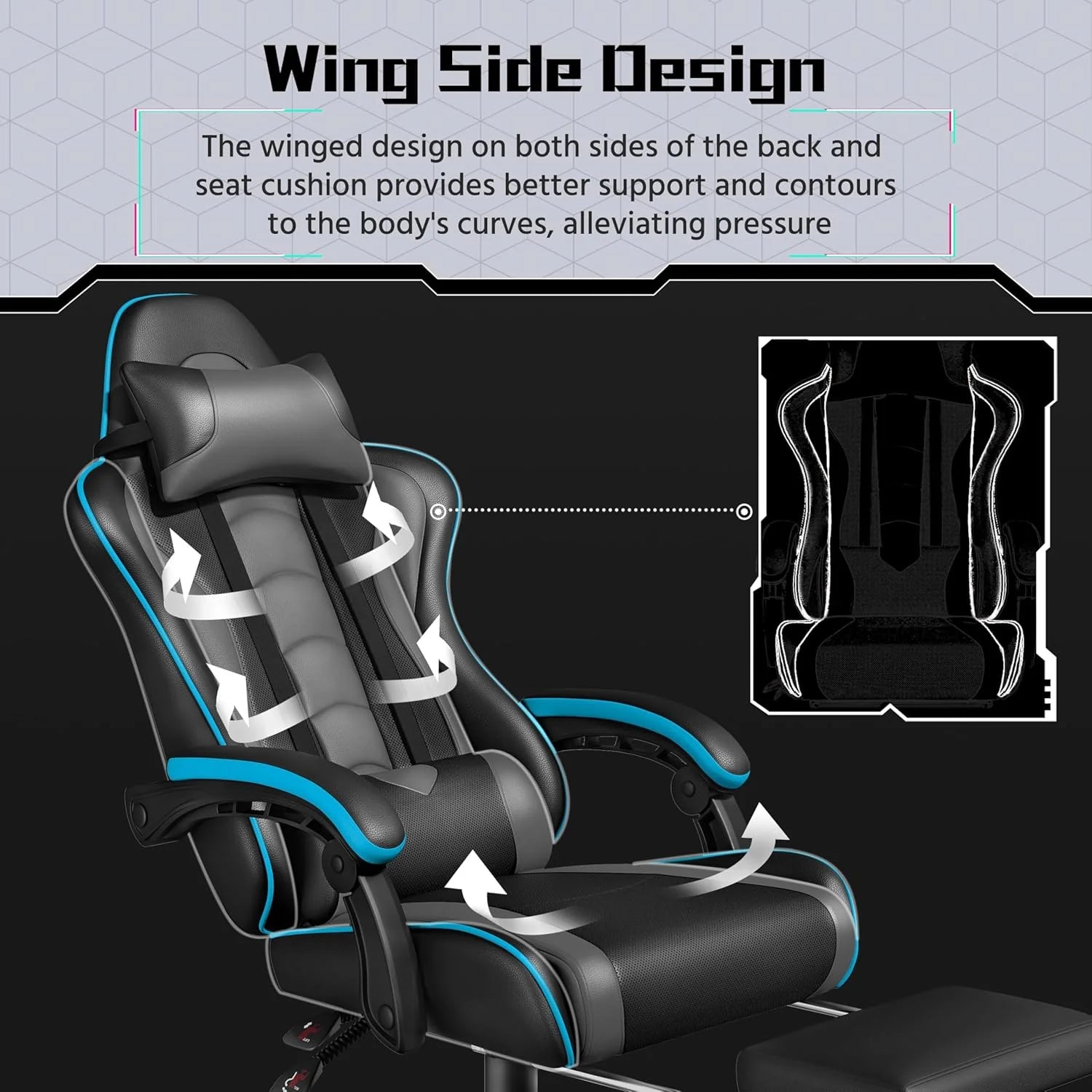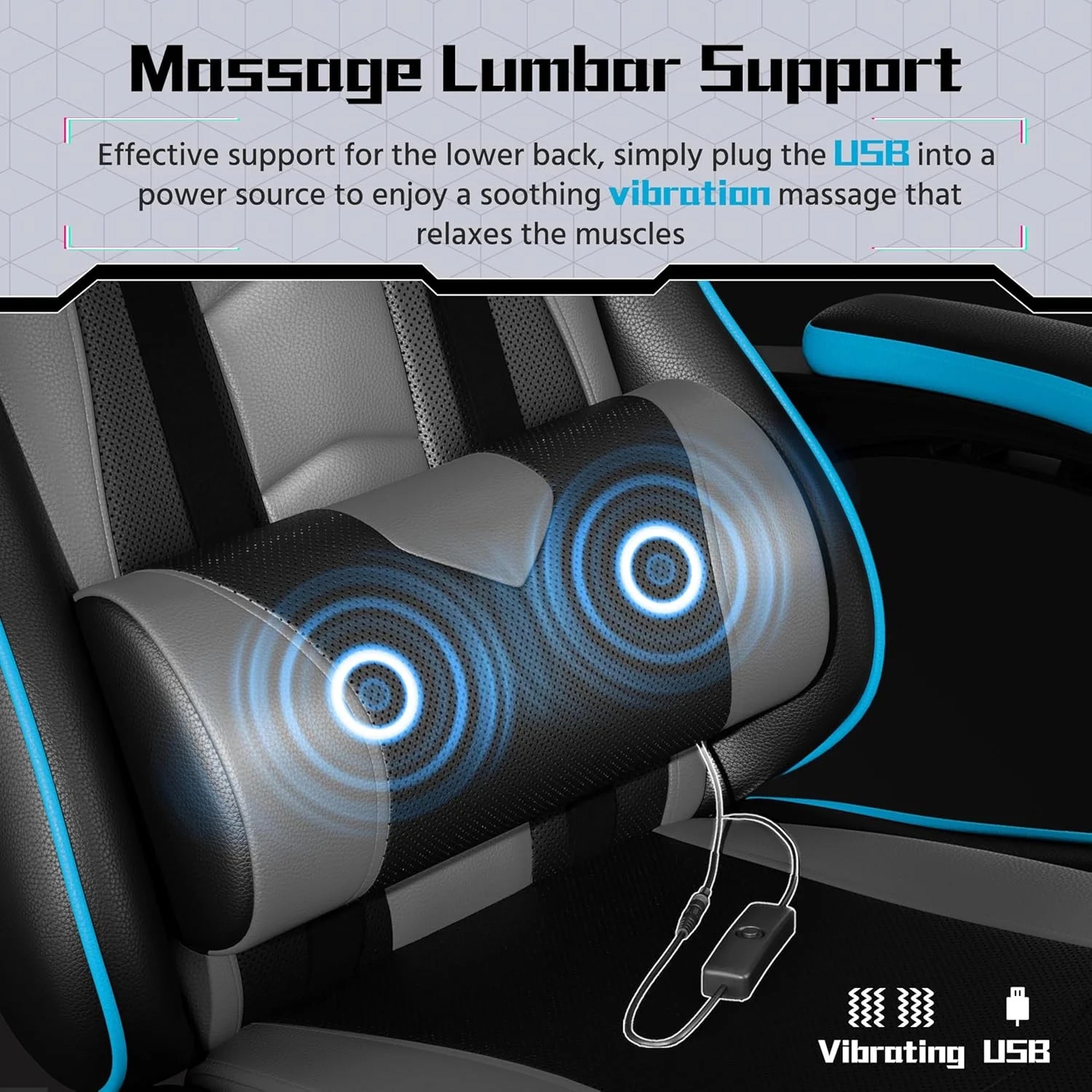 Gaming Chair with Massage Lumbar Support and Footrest Height Office Gaming Chair