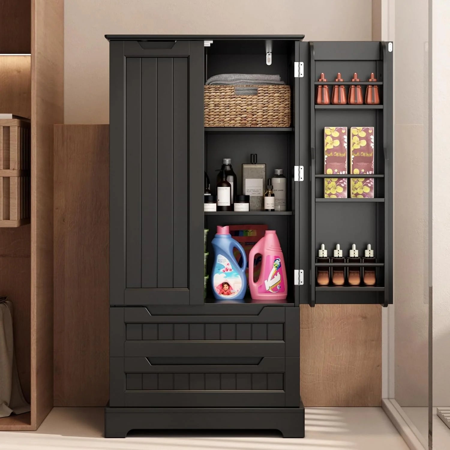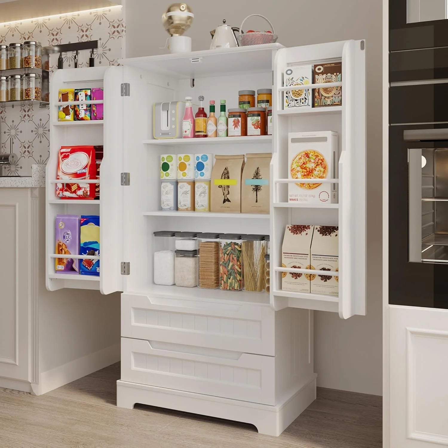 Gizoon Kitchen Pantry Cabinet with Drawers Freestanding Bathroom Storage Cabinet with Doors and Shelves, 47 Inch Small Pantry Cabinet