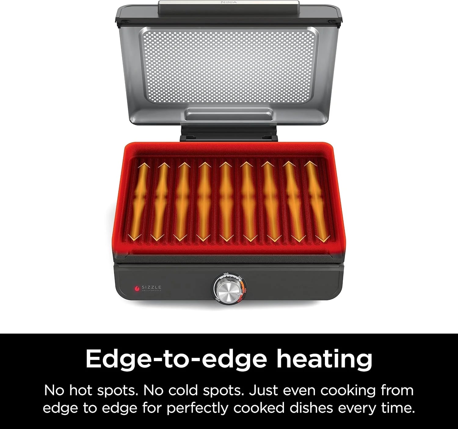 - WHAT’S INCLUDED: Sizzle Indoor Grill & Griddle, 14’’ Nonstick Grill Plate, 14’’ Nonstick Flat-Top Griddle Plate, & Quick Start Guide with 10 Recipes.