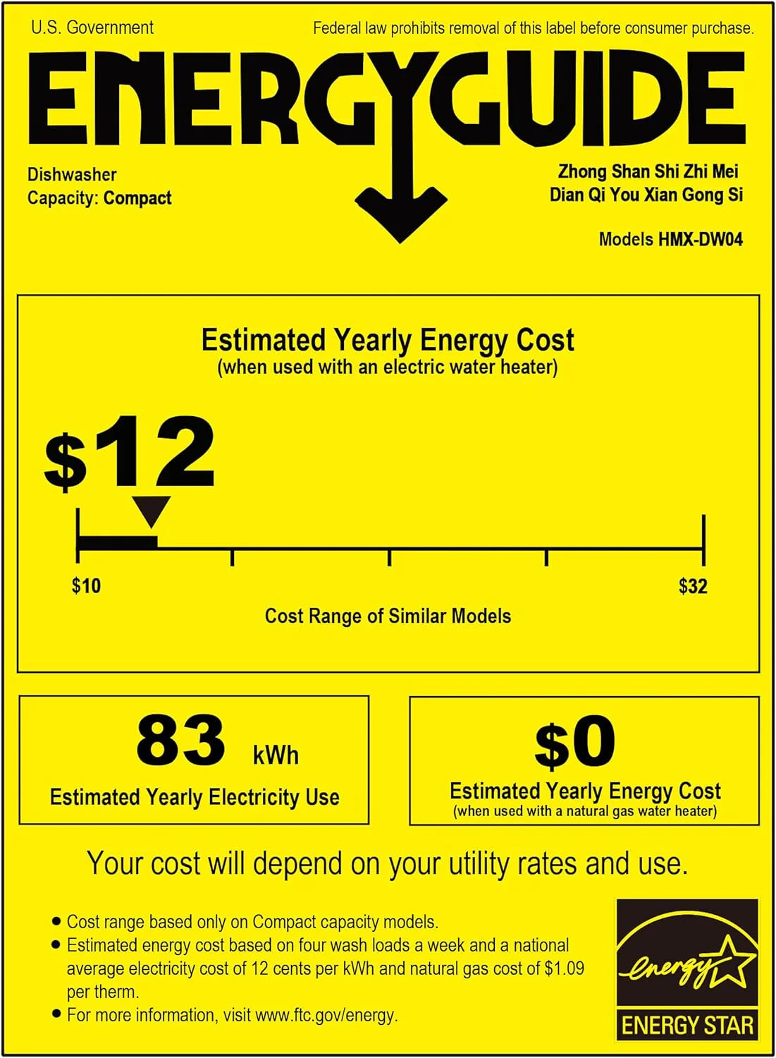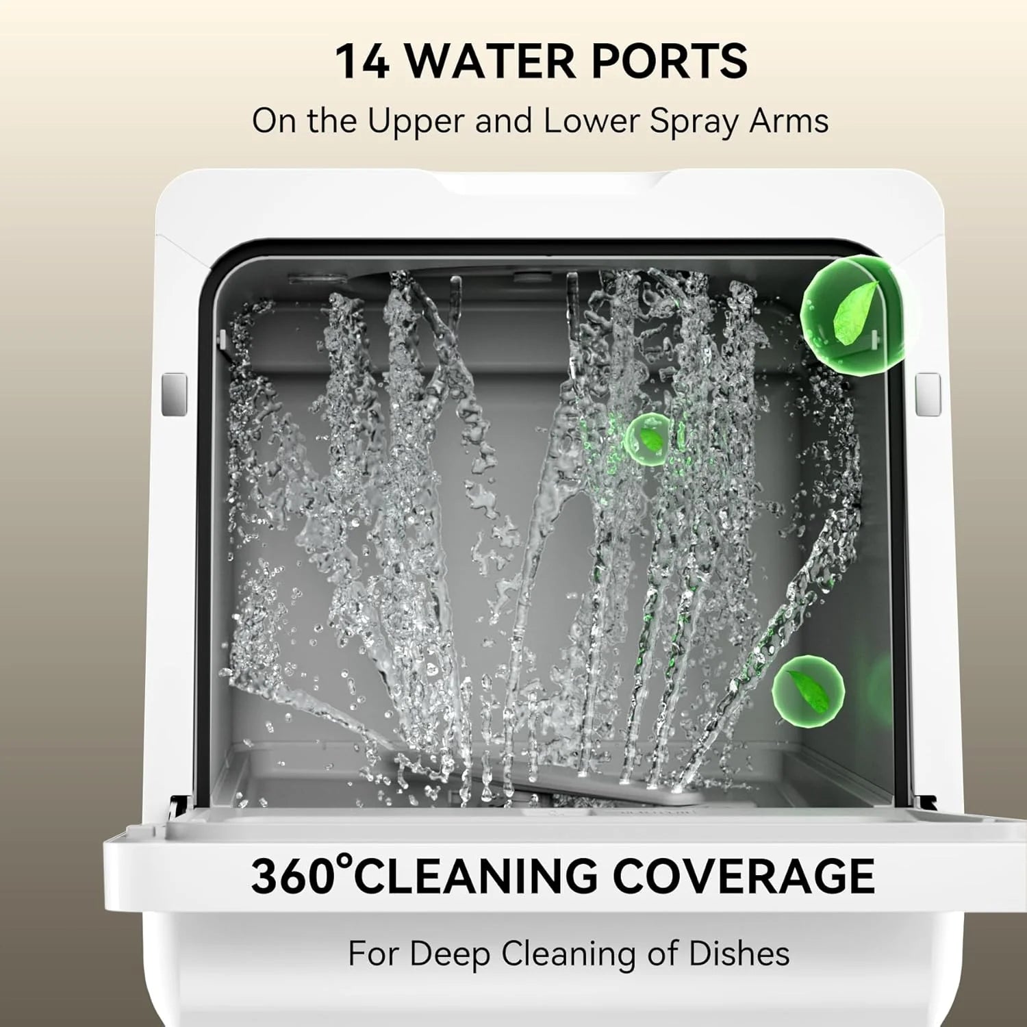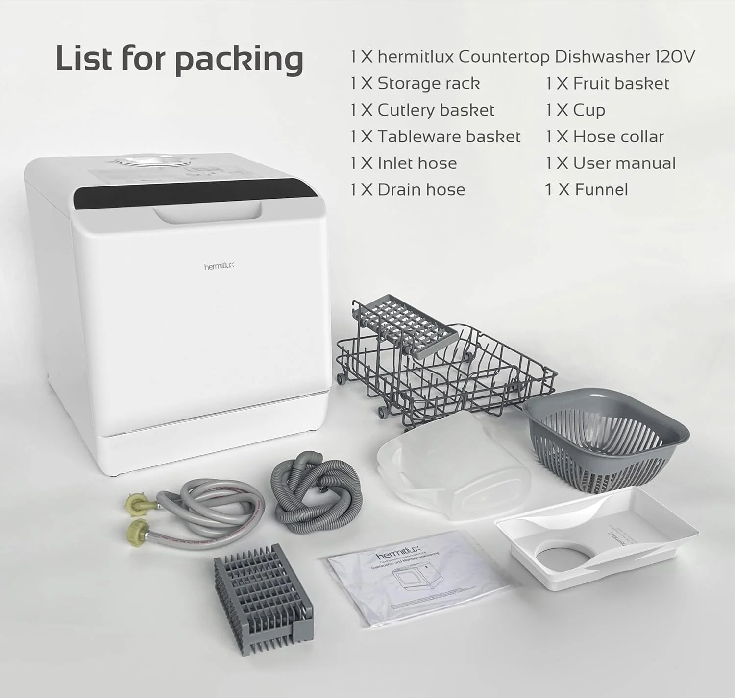 Hermitlux tabletop dishwasher, 7 wash programs, portable mini dishwasher