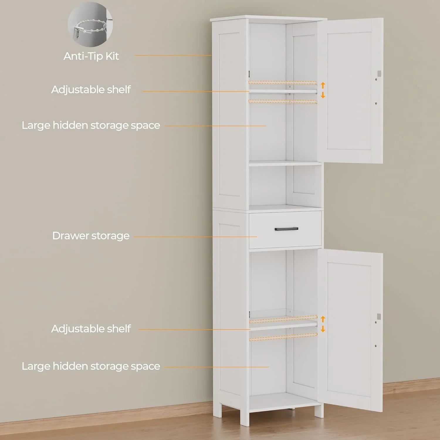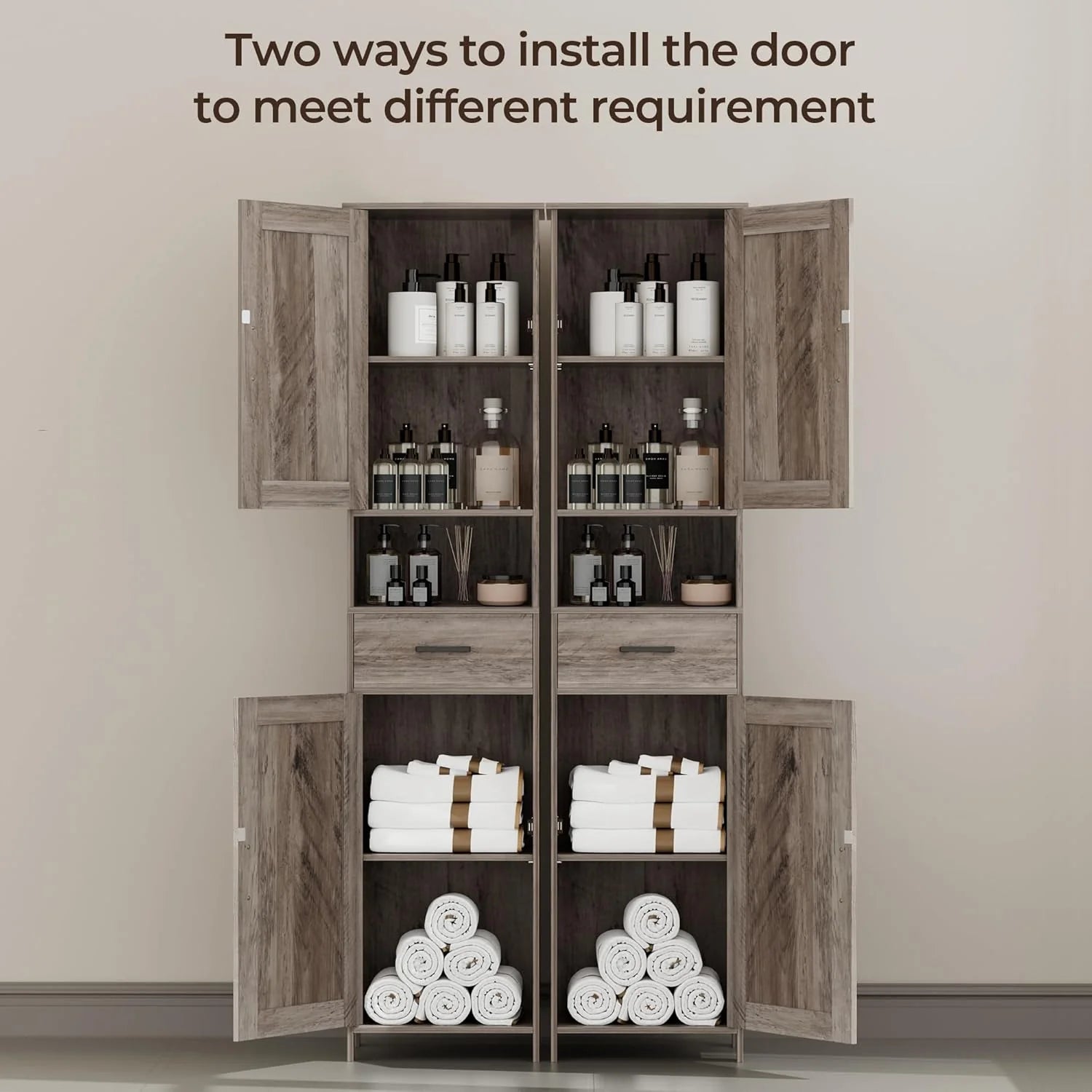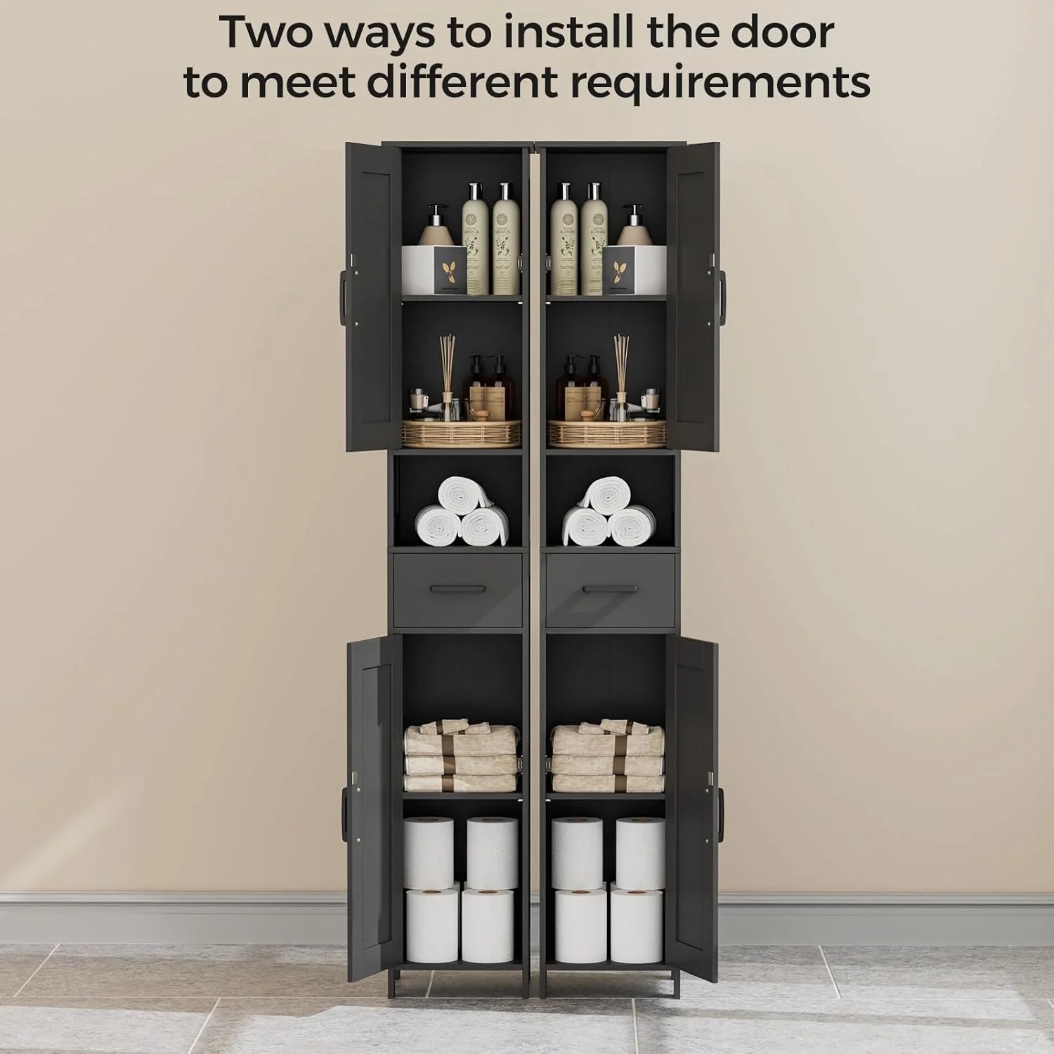 - Multi-functional Storage: The bathroom tall cabinet features two doors and one Drawer , offering versatile storage options. You can organize and store towels, toiletries, kitchen utensils, and more, keeping your living space tidy and organized