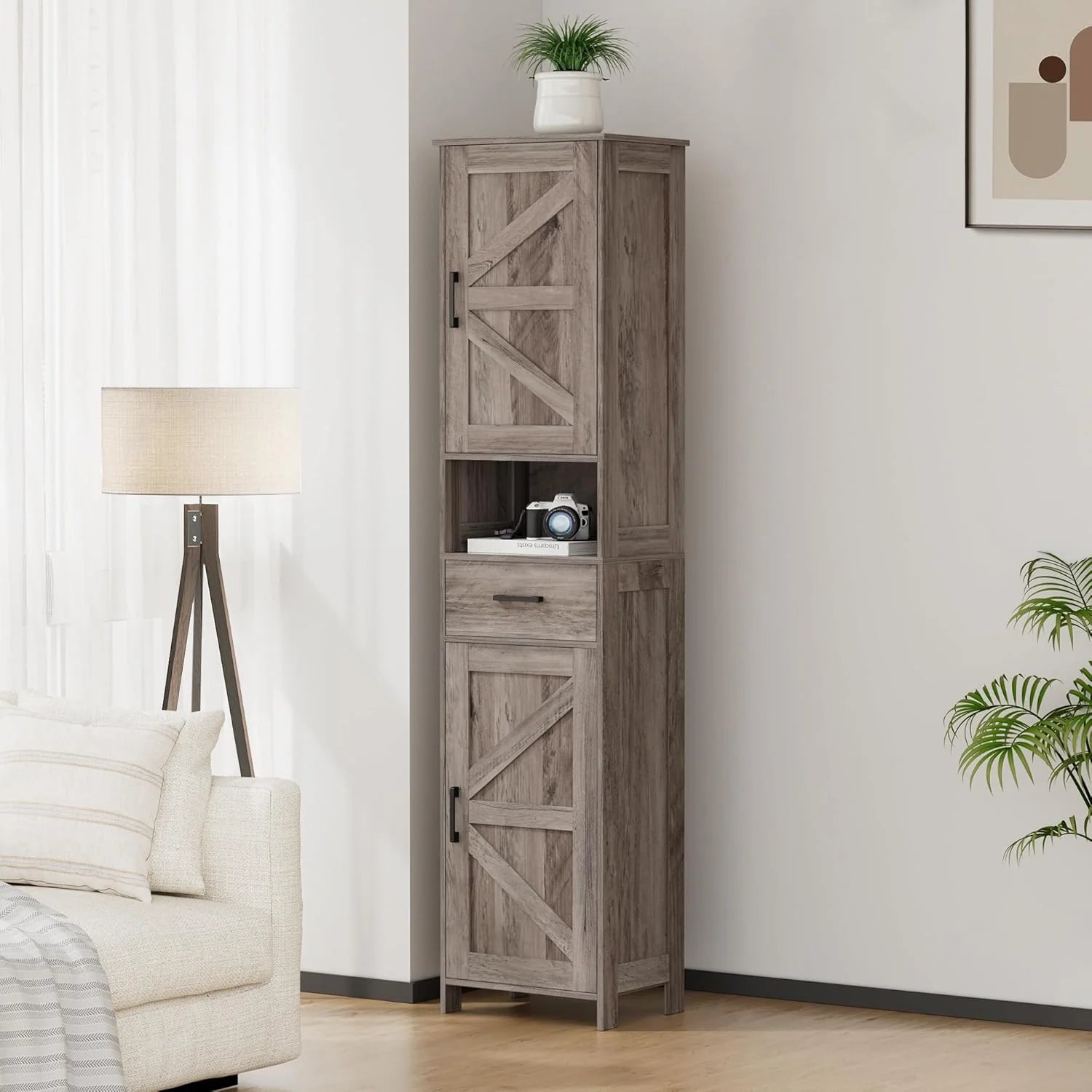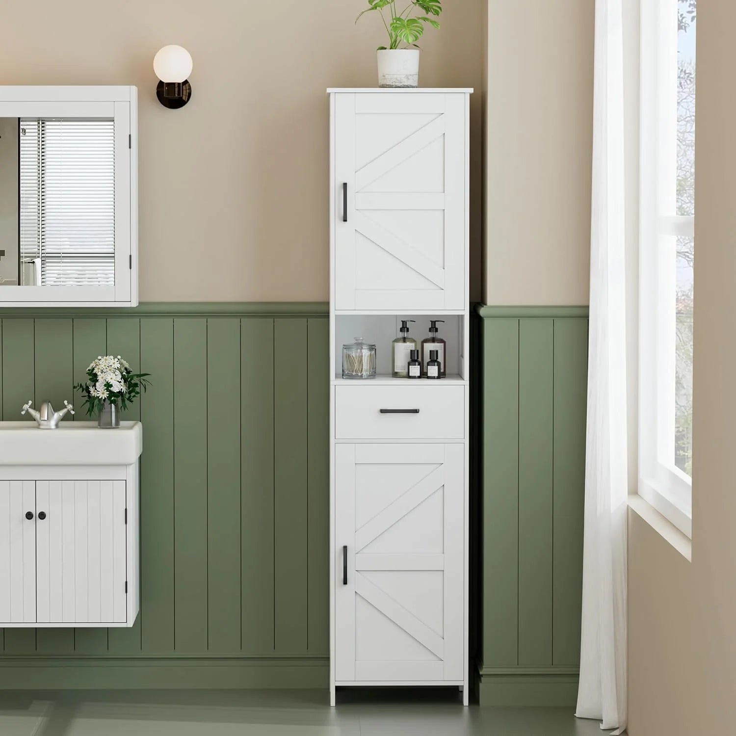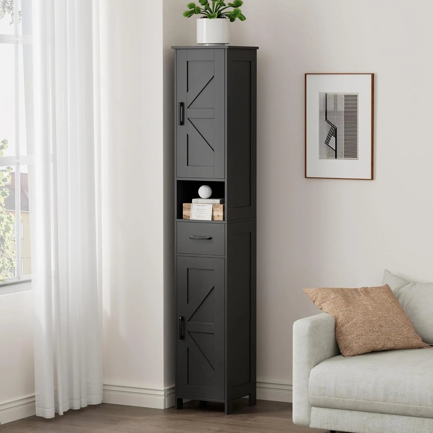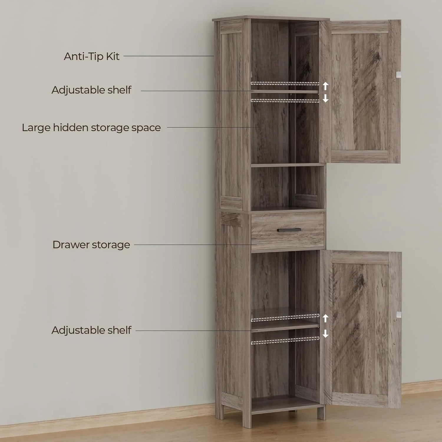 - Multi-functional Storage: The bathroom tall cabinet features two doors and one Drawer , offering versatile storage options. You can organize and store towels, toiletries, kitchen utensils, and more, keeping your living space tidy and organized