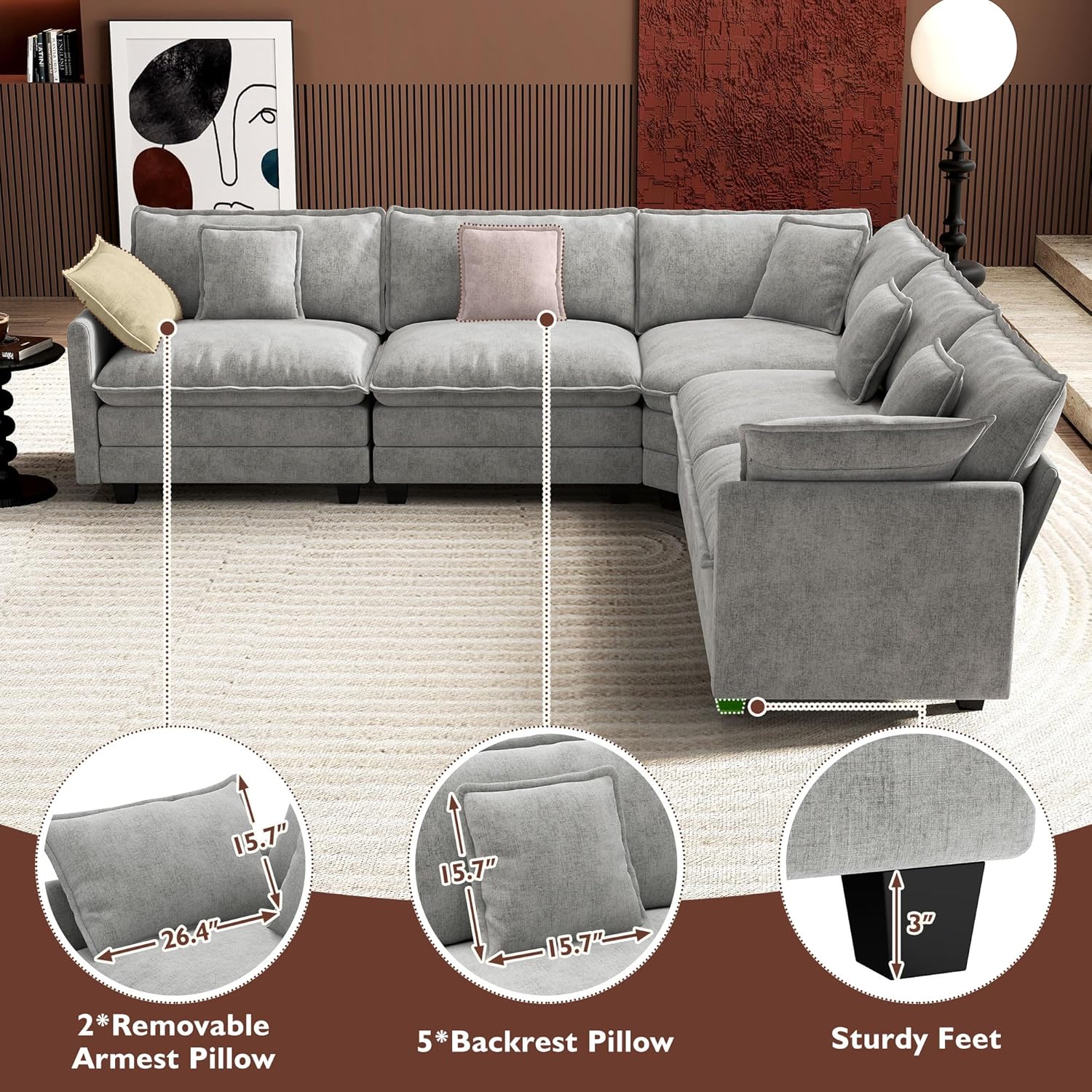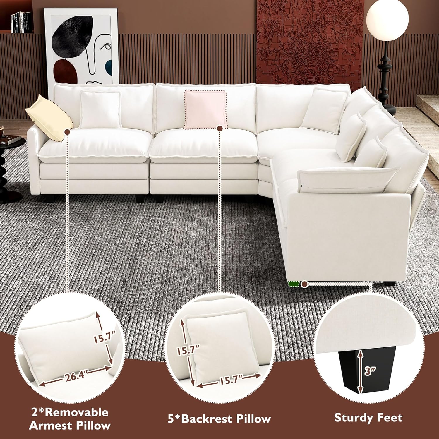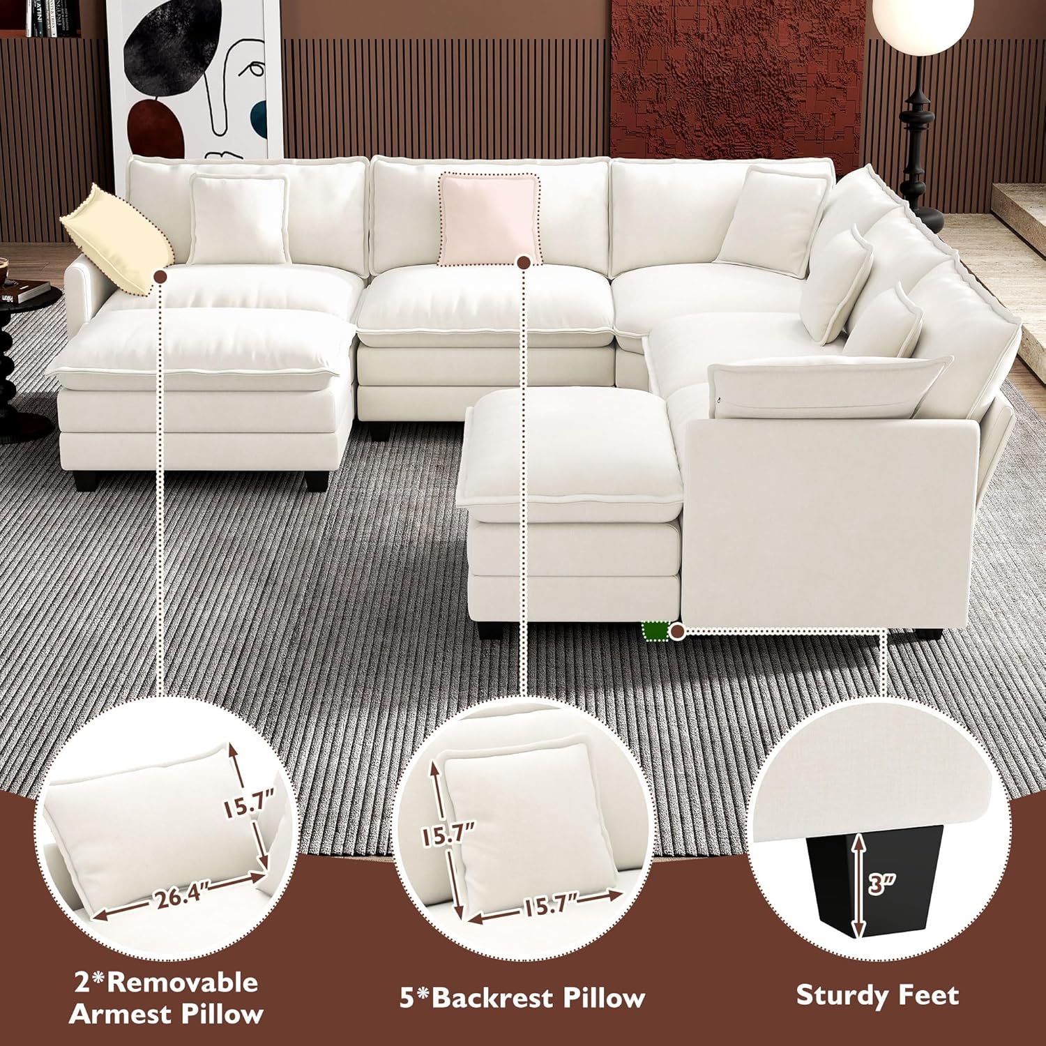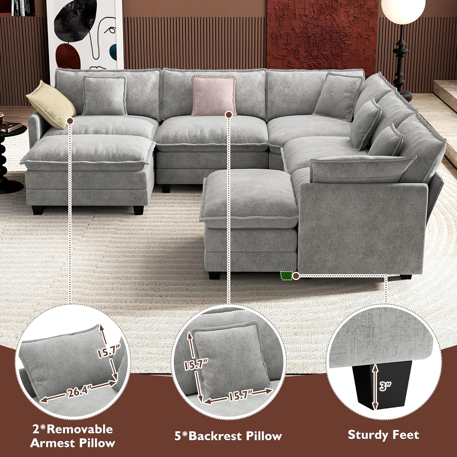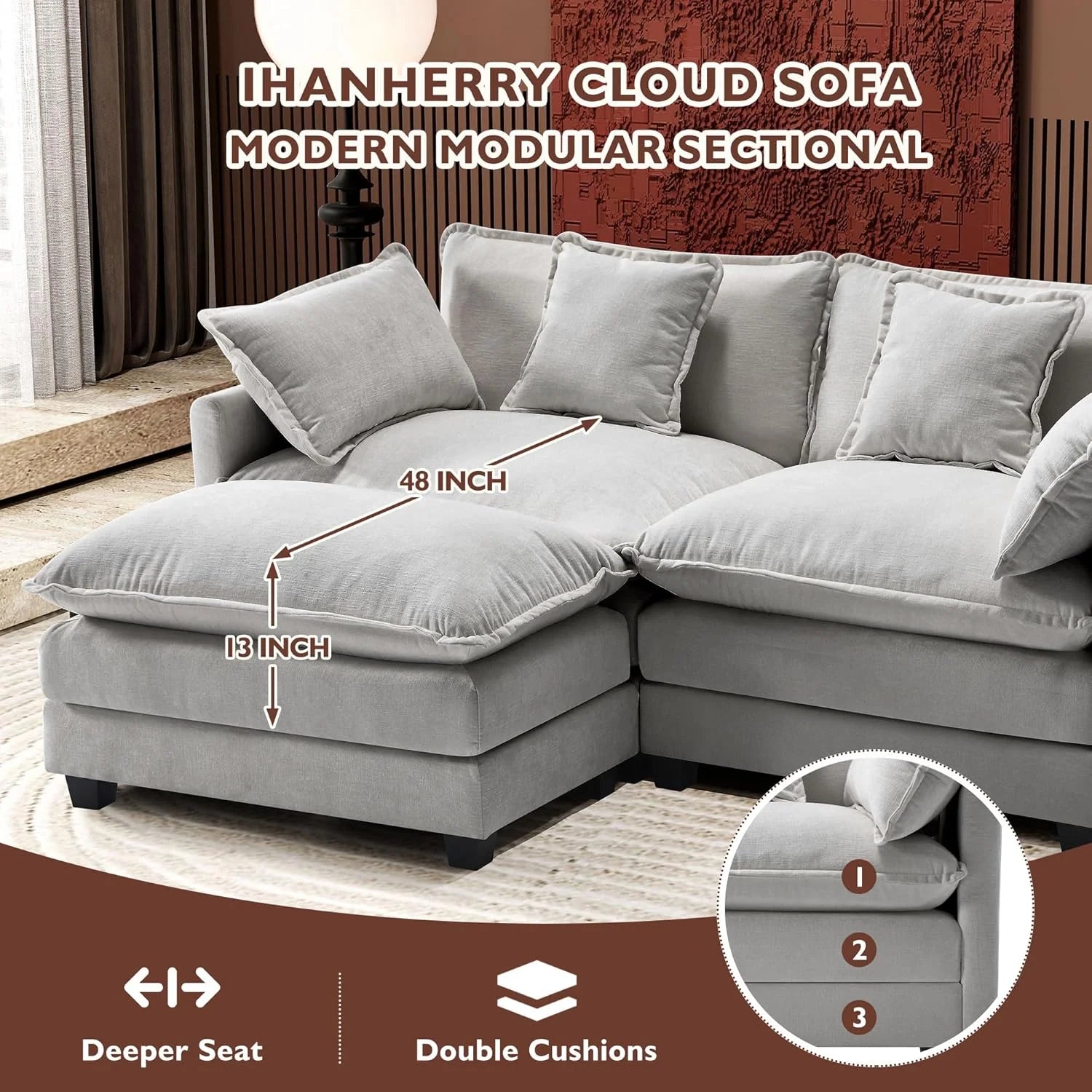 ihanherry 146-inch U-shaped modern sofa modular area cloud sofa