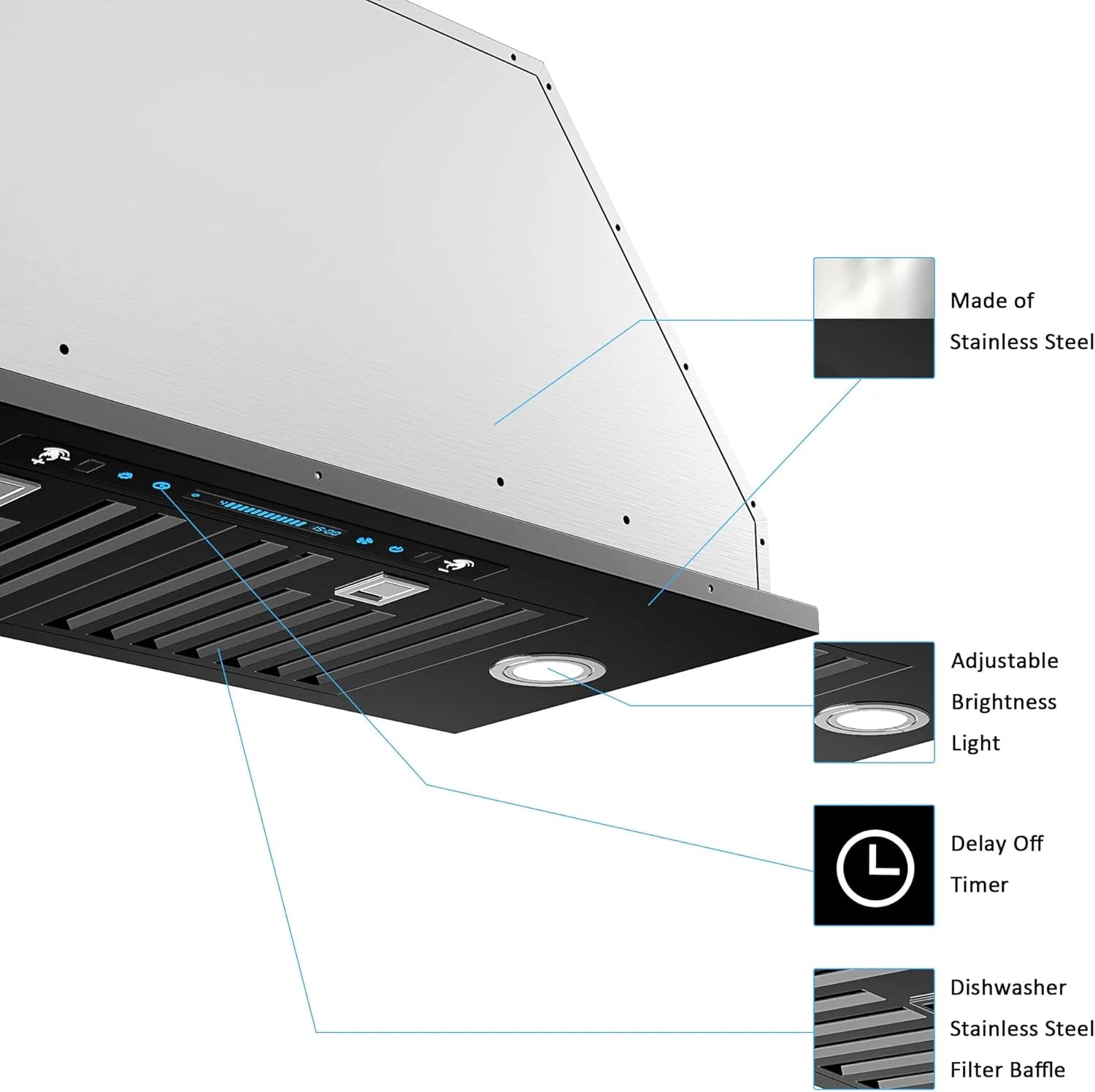 IKTCH 30" Built-in/Plug-in Range Hood 900 CFM, Ducted/Ductless Convertible Ducted, Stainless Steel Kitchen Range Hood