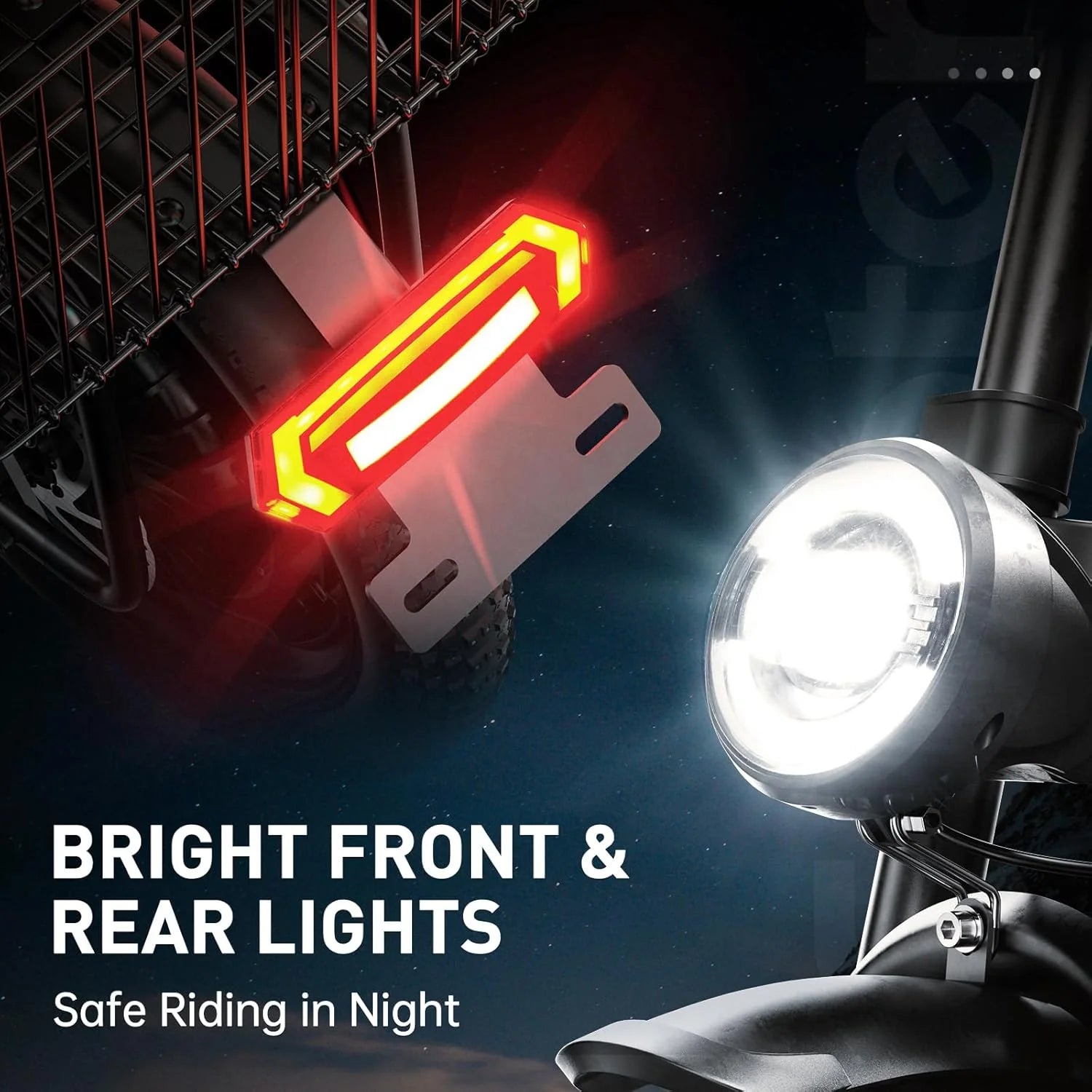 - 【Comfortable Ride and Convenient】With front and rear dual suspensions, iScooter adult electric scooter tackles rough roads with ease. It effortlessly handles 15% inclines while ensuring a smooth and comfortable ride, even on bumpy terrain. The scooter electric weighing 55 lbs features one-step folding design that makes it easily fits in your car trunk