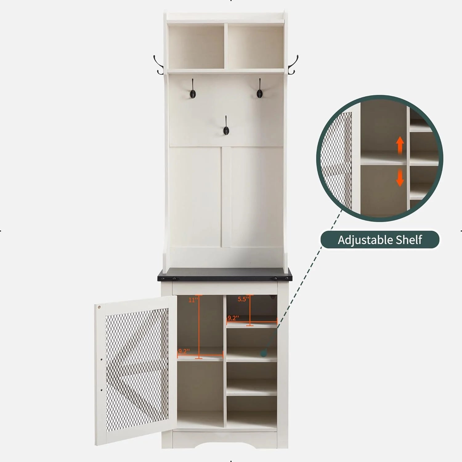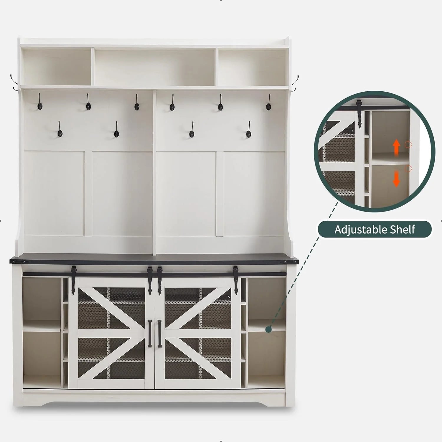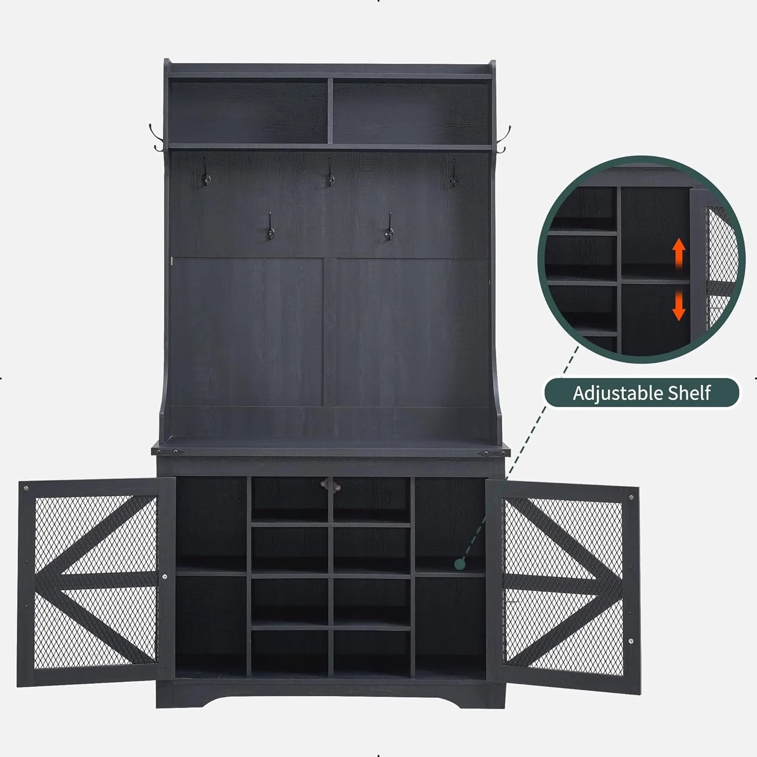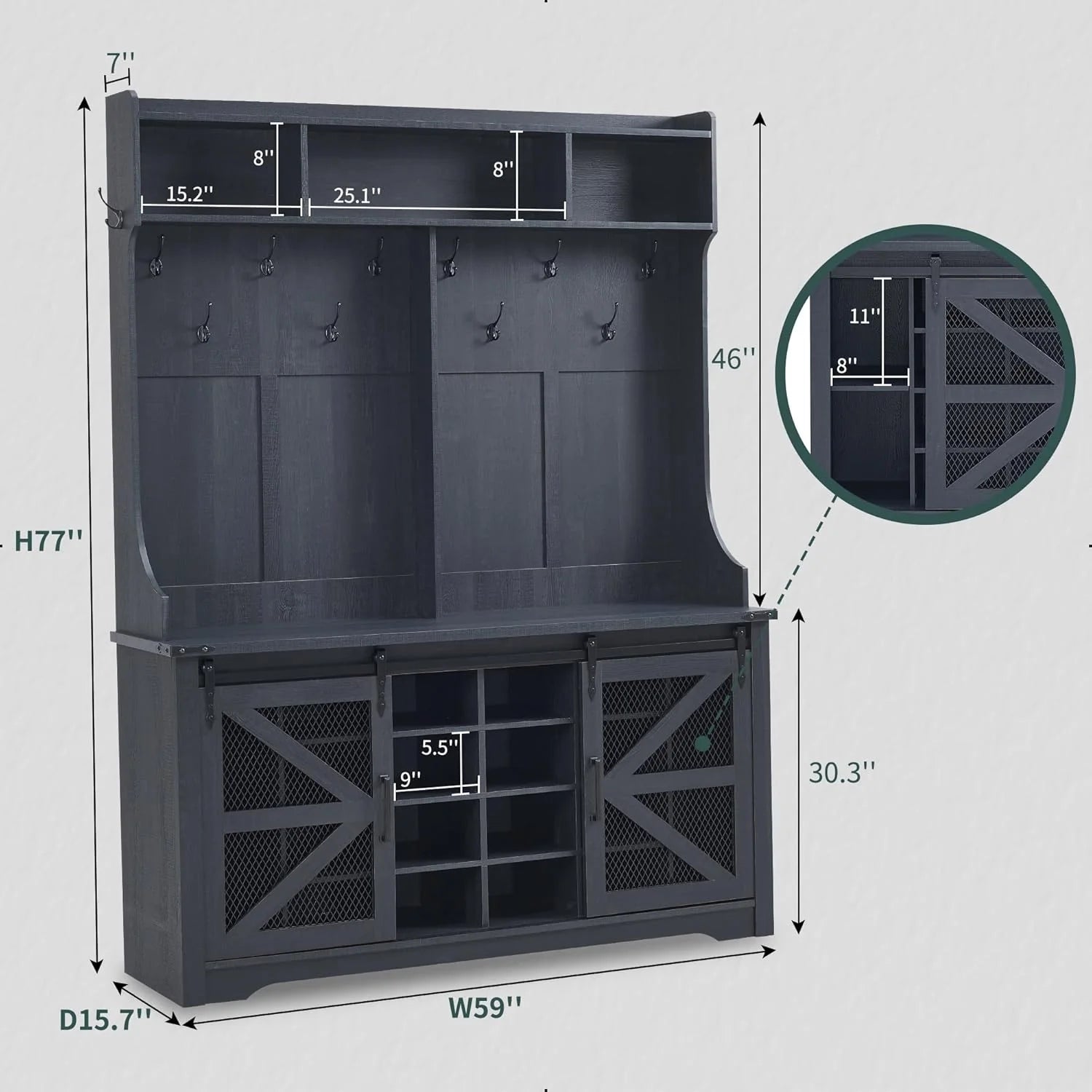 JXQTLINGMU 59-inch Farmhouse Foyer Tree with Shoe Storage, Entryway Bench Foyer Coat Rack Cabinet