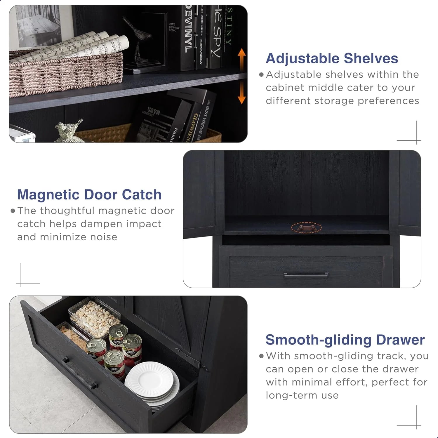 72" Tall Kitchen Pantry Storage Cabinet with 2 Barn Doors and Shelves and Drawer