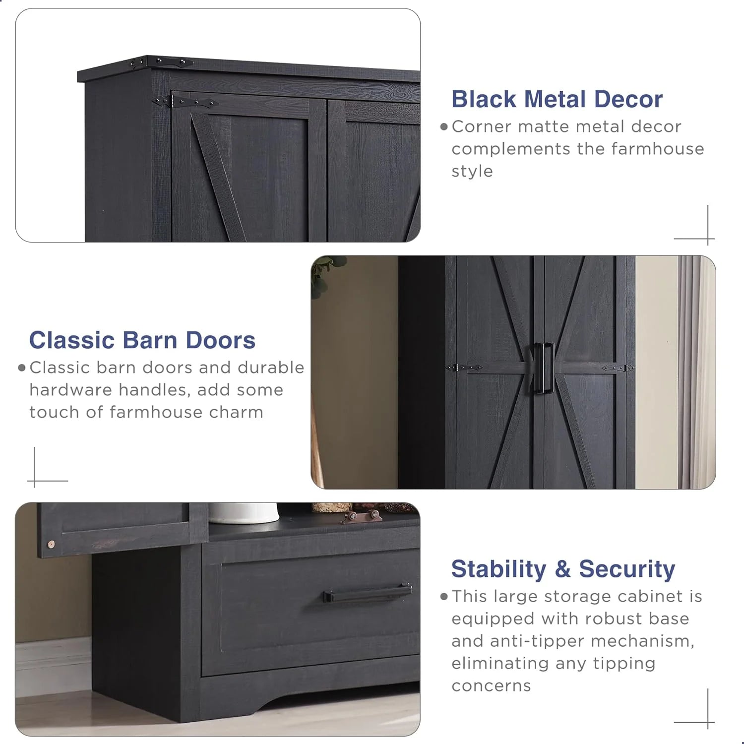 This storage cabinet features 2 classic barn doors and durable hardware handles, adding some touch of rustic farmhouse charm