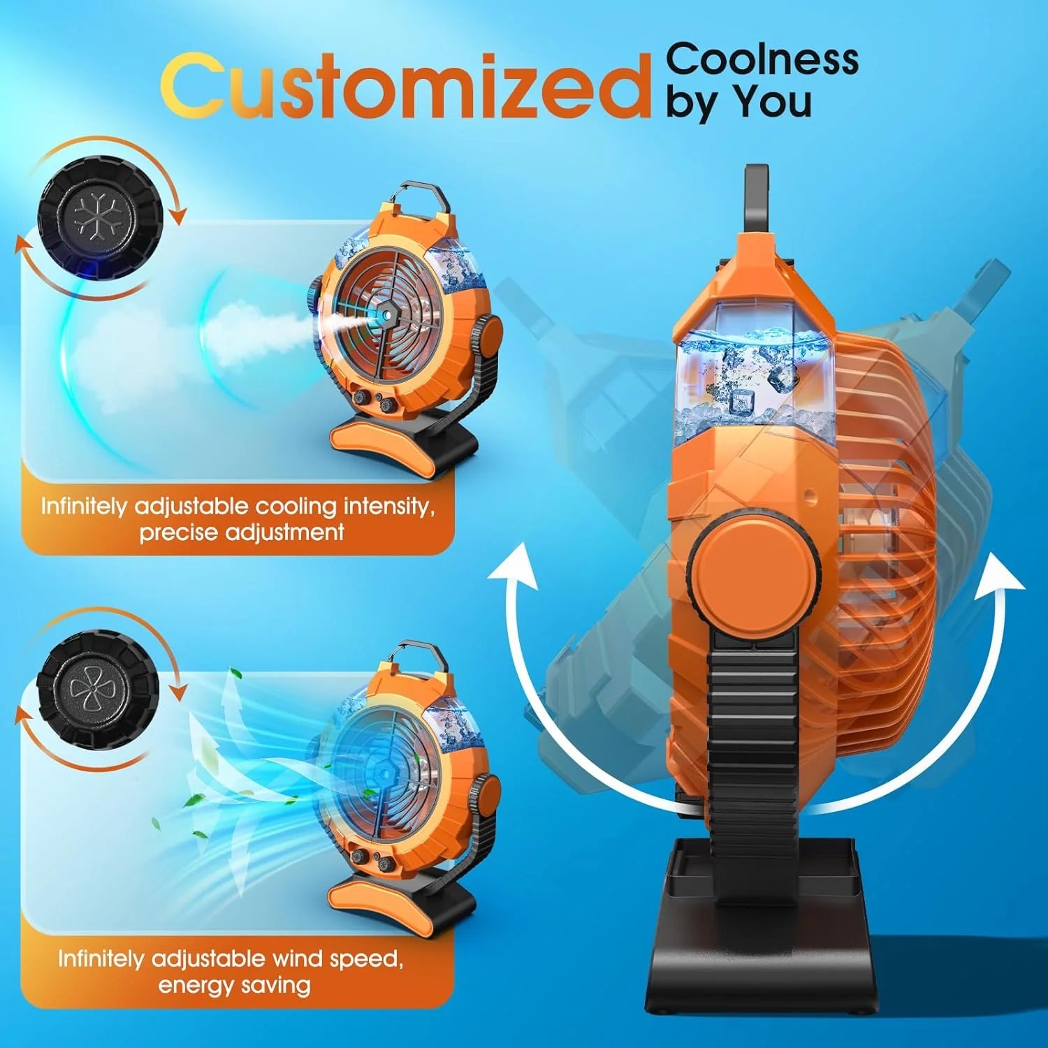 - 【Potent yet Peaceful Breeze】Featuring tri-blades, JYew Outdoor Misting fan portable cooling fan delivers significantly stronger airflow while remaining remarkably quiet. With 3 adjustable speeds, it caters to various needs for different occasions. An ideal outdoor cooling fan to provide instant relief on sweltering days.