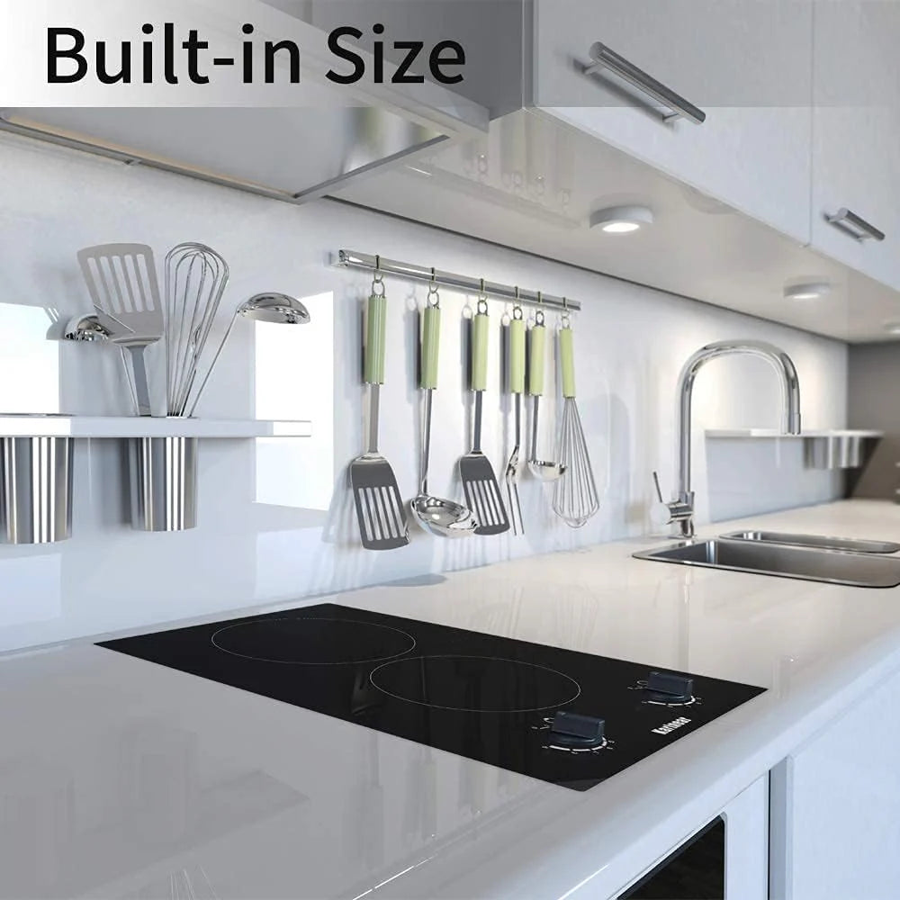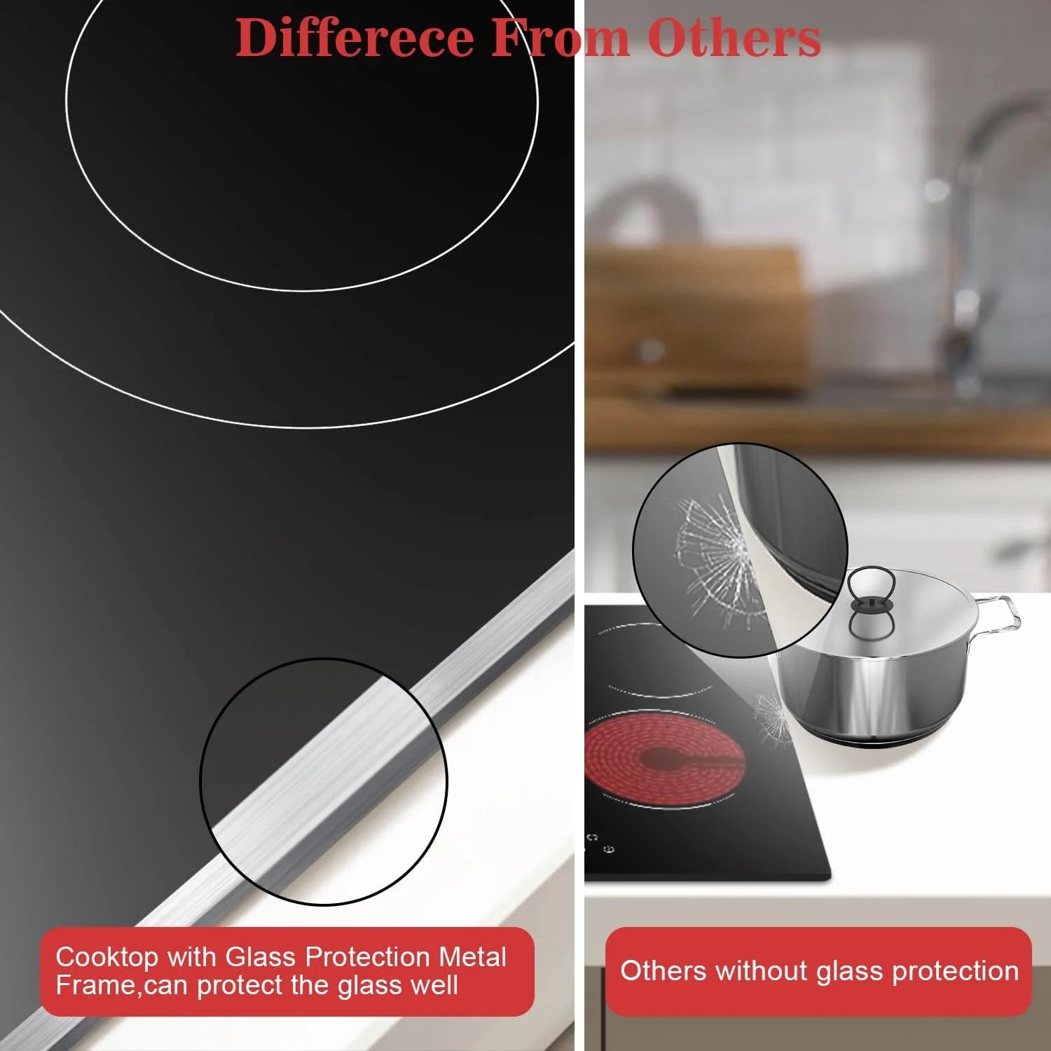 - 【Electric Cooktop 30 inch with Glass Protection Metal Frame】Different from other electric radiant cooktop, the 30'' electric cooktop has added metal frame which can prevent the glass from being broken due to excessive collision and prolong the life of the electric stovetop. The stylish and elegant silver metal frame not only protects the glass, but also makes the knob electric stove look better overall. Drop-in electric cooktop fits perfectly into every cabinet.