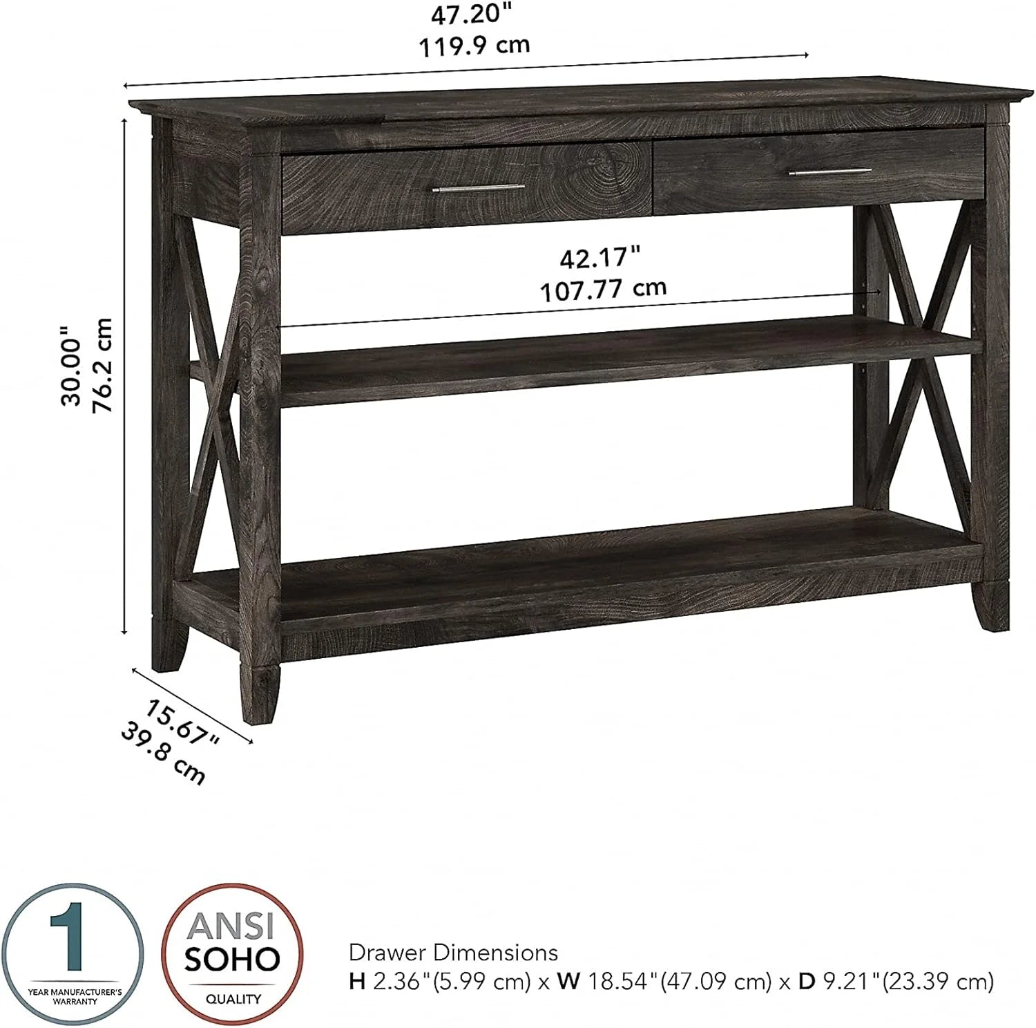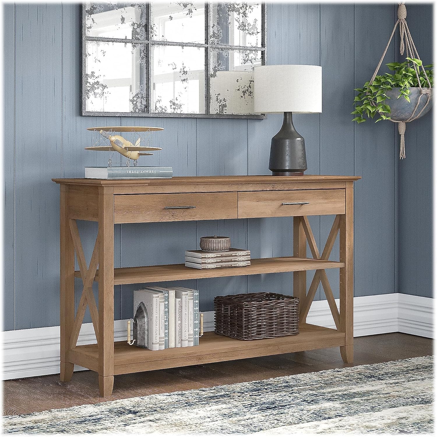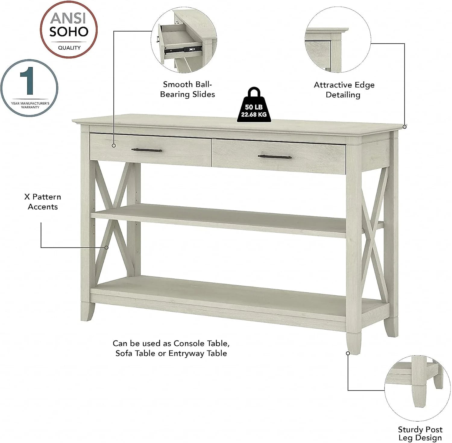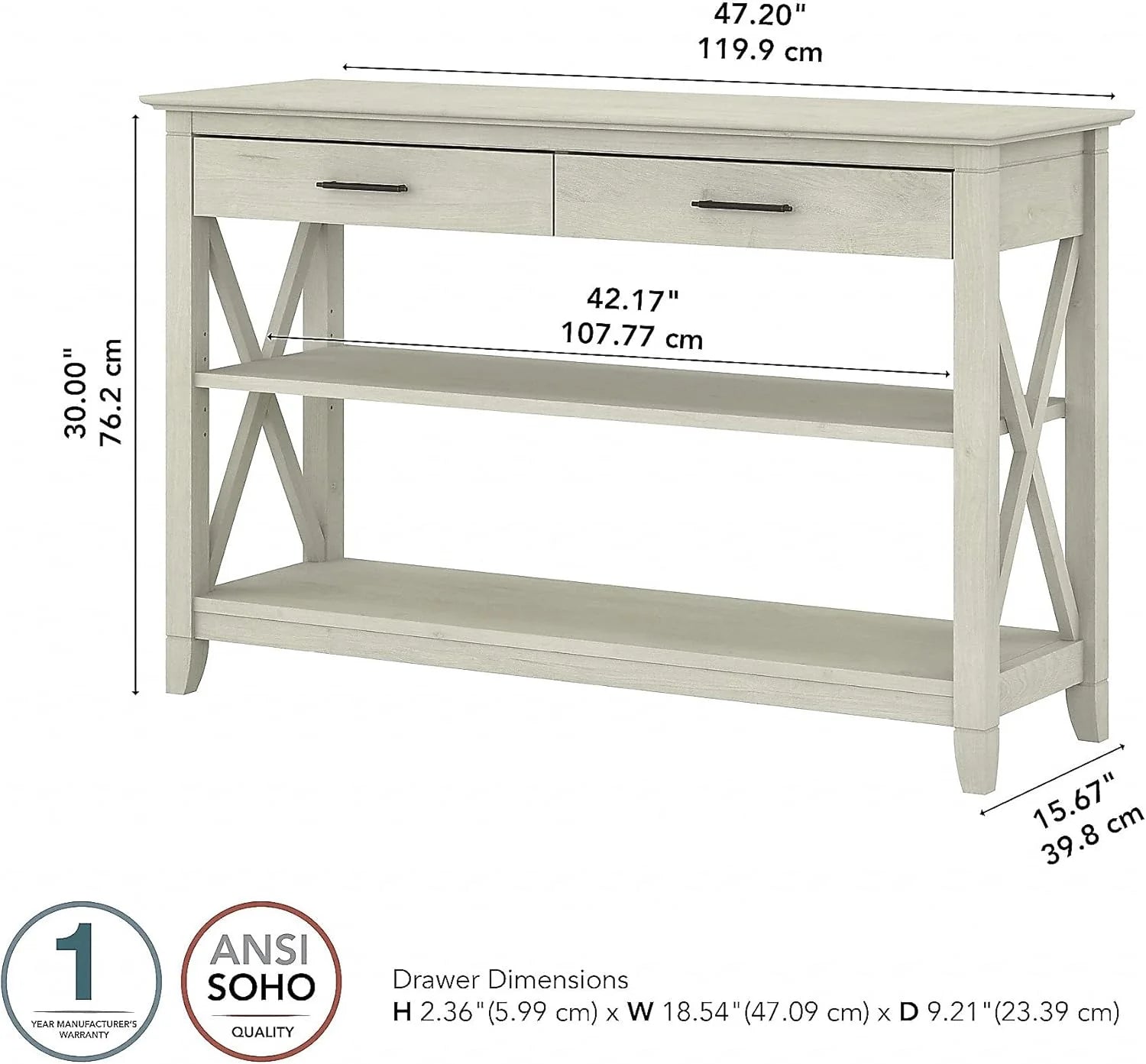 Key West Console Table with Drawers and Shelves in Linen White Oak