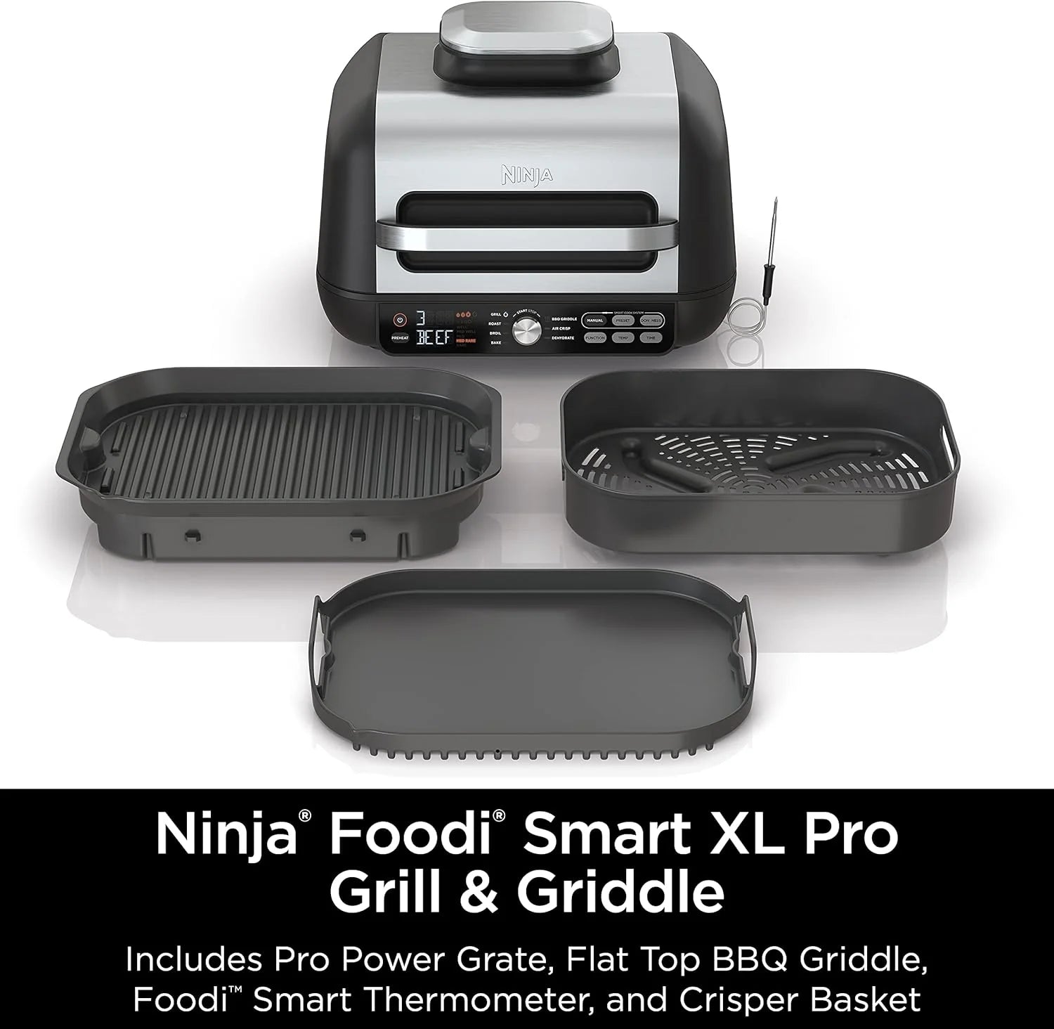 Ninja Foodi Smart XL 6-in-1 Indoor Grill with Air Fry, Bake, Roast, Broil, and Dehydrate, Smart Thermometer