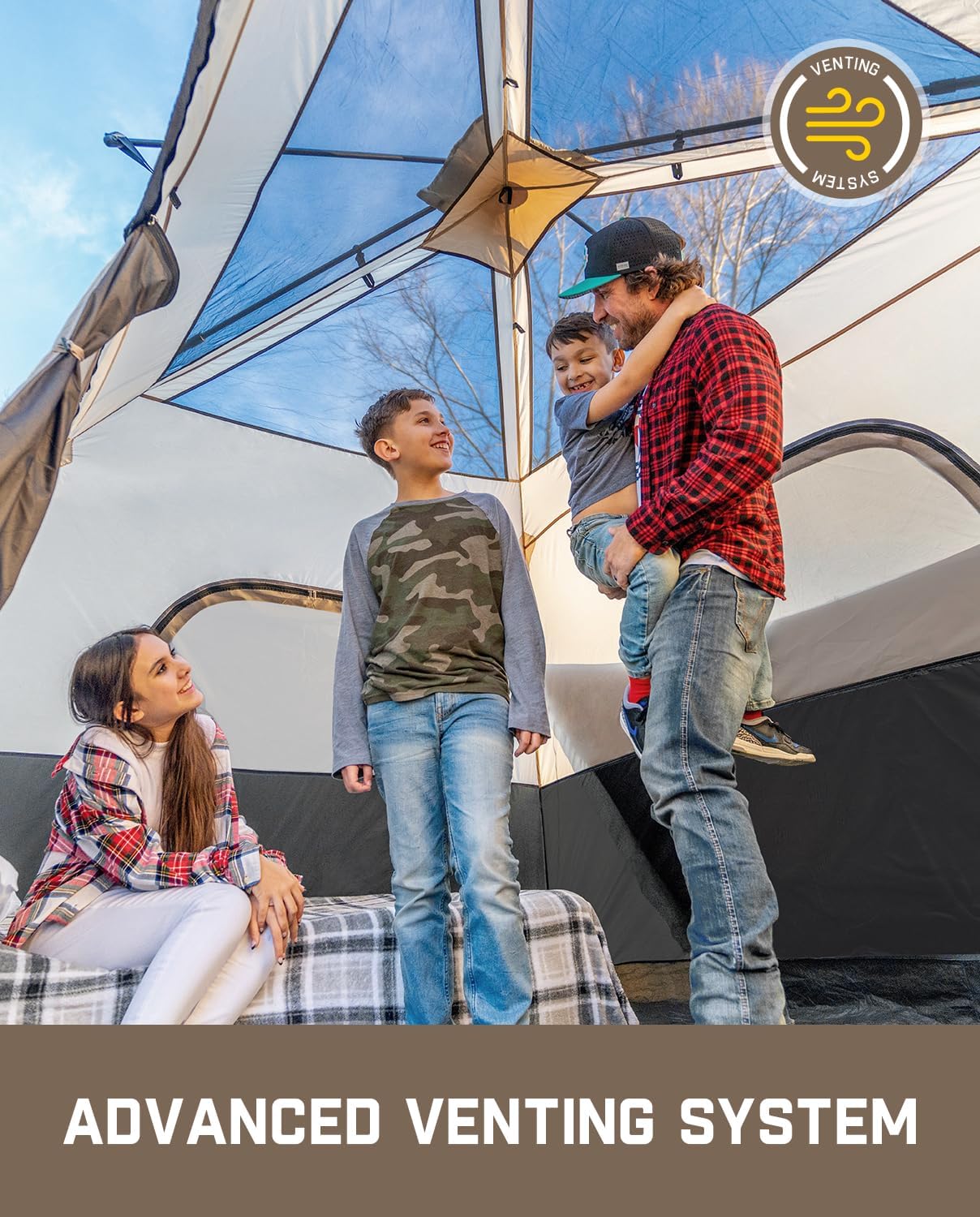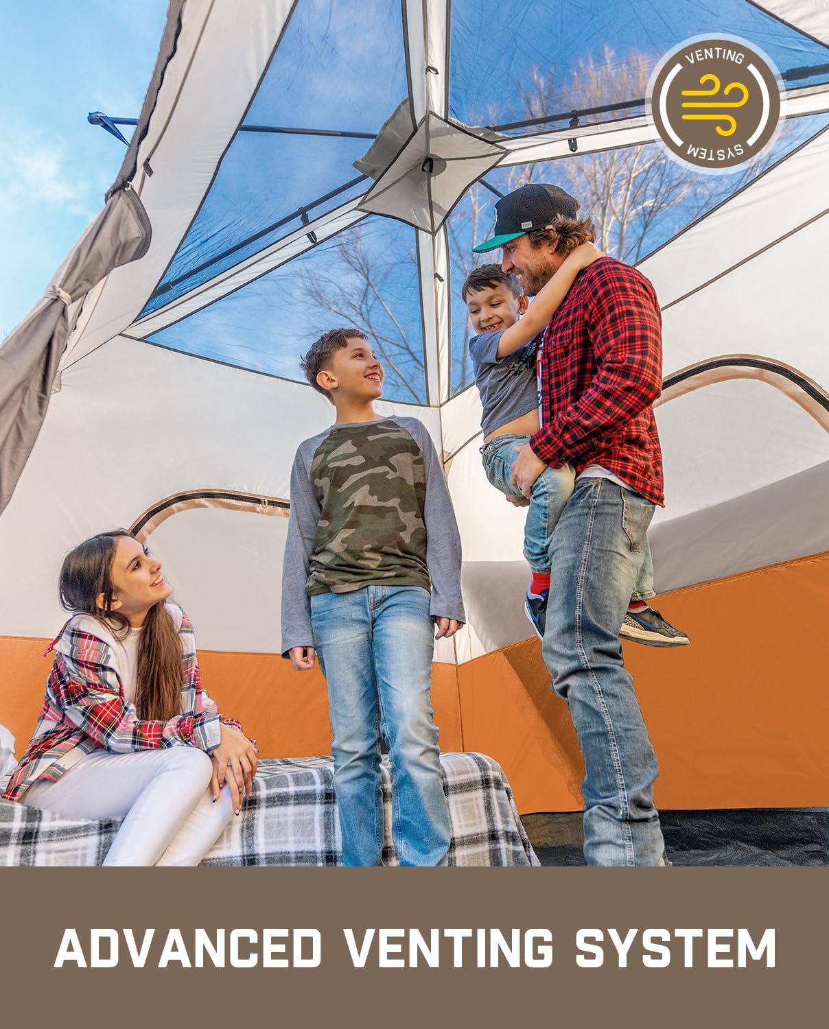 Portable camping tent for 4/6/8/10 people with instant cabin and rainproof and windproof