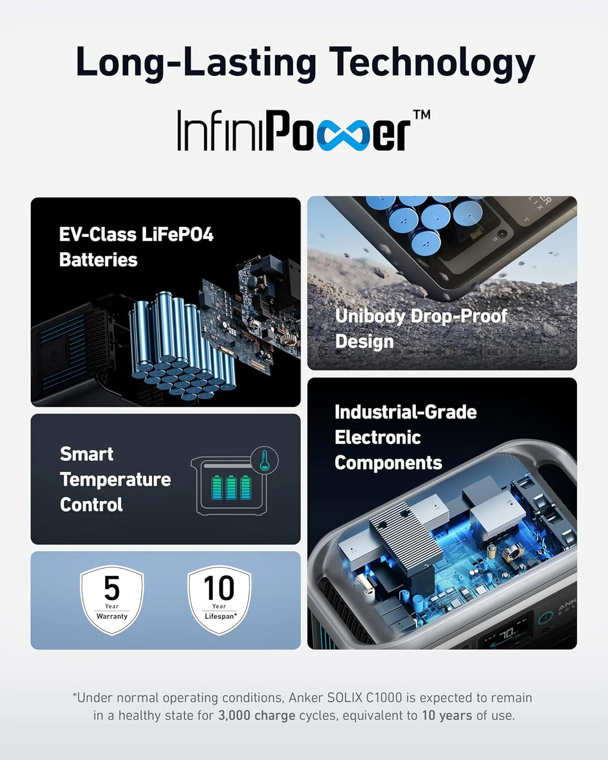 Experience reliable, high-capacity power anywhere with this Portable Power Station. Delivering 1800W continuous power and 2400W peak output, it supports a wide range of devices. Its advanced 1056Wh LiFePO4 battery ensures long-lasting performance and safety. Fully recharge in just 58 minutes, minimizing downtime and keeping you powered on the go. Ideal for outdoor adventures, emergencies, or remote work, this solar generator combines efficiency and convenience in a compact design. Stay energized wherever life takes you.
