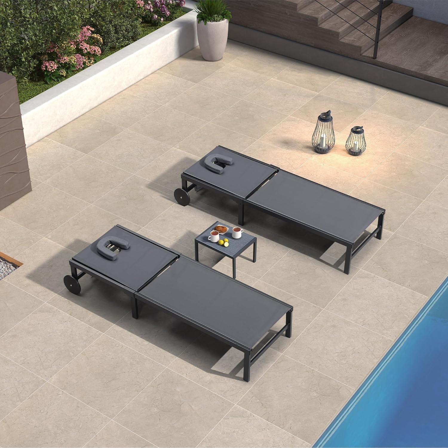 PURPLE LEAF Outdoor Double Chaise Lounge Chair Set