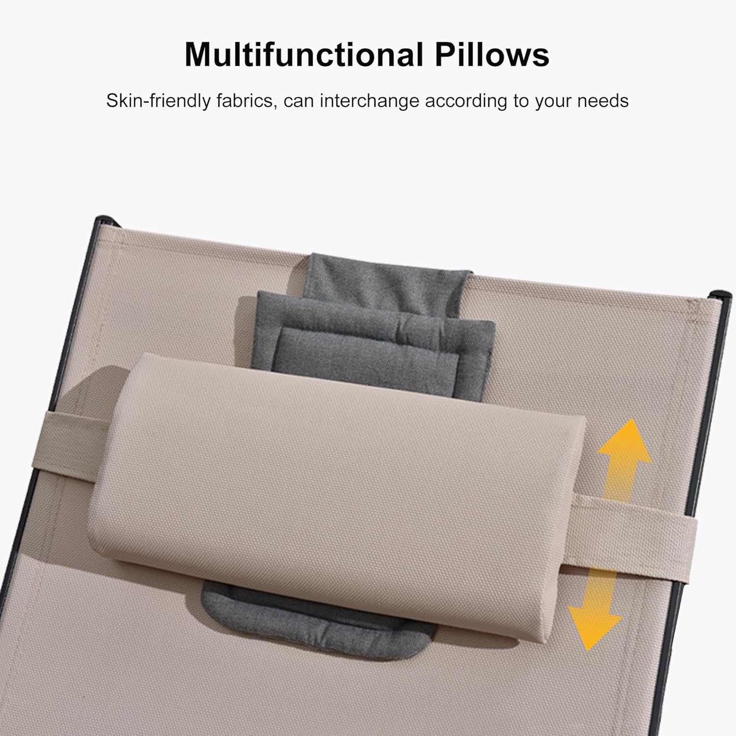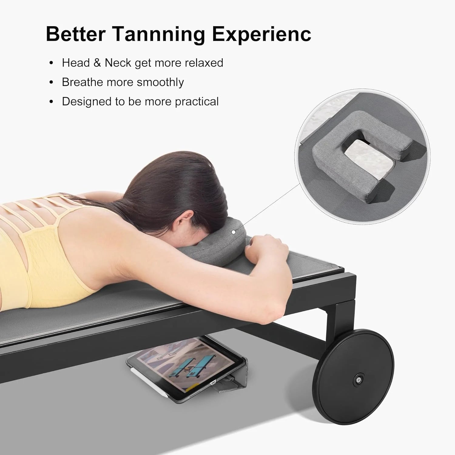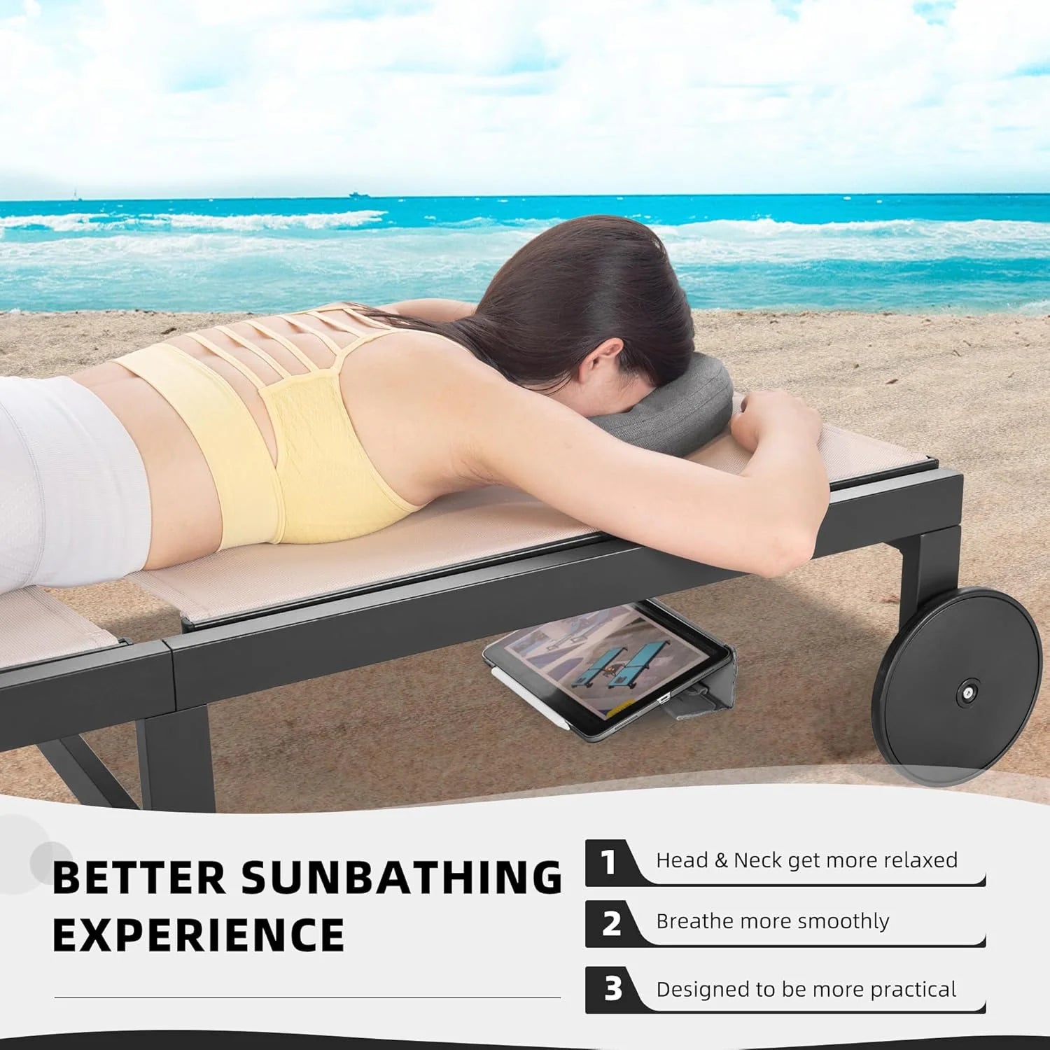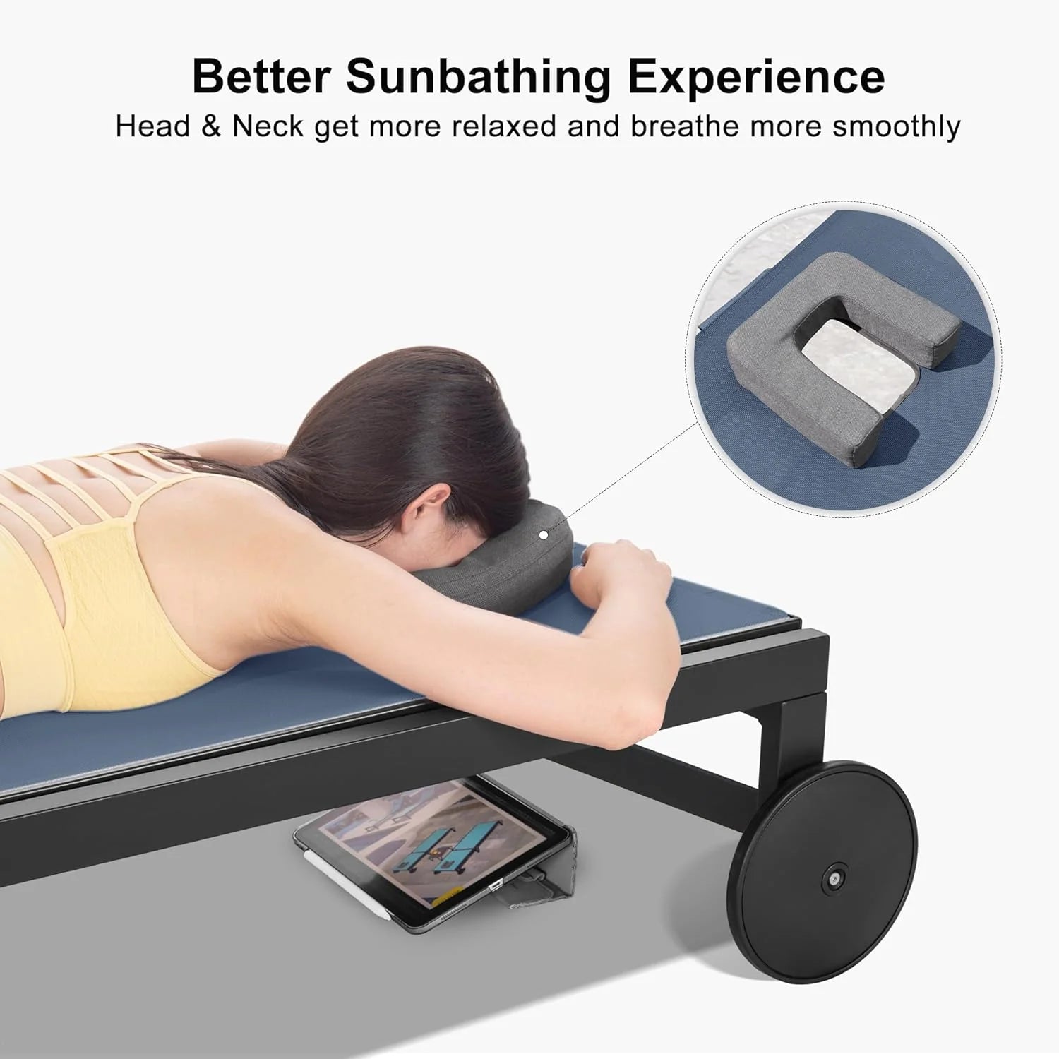 - Removable Sunbathe Face Down Pillow : The lightweight face-down beach lounge chairs suit for outside sunbathing, sun tanning on the beach, poolside, patio, sun deck, backyard, lawn, garden.
