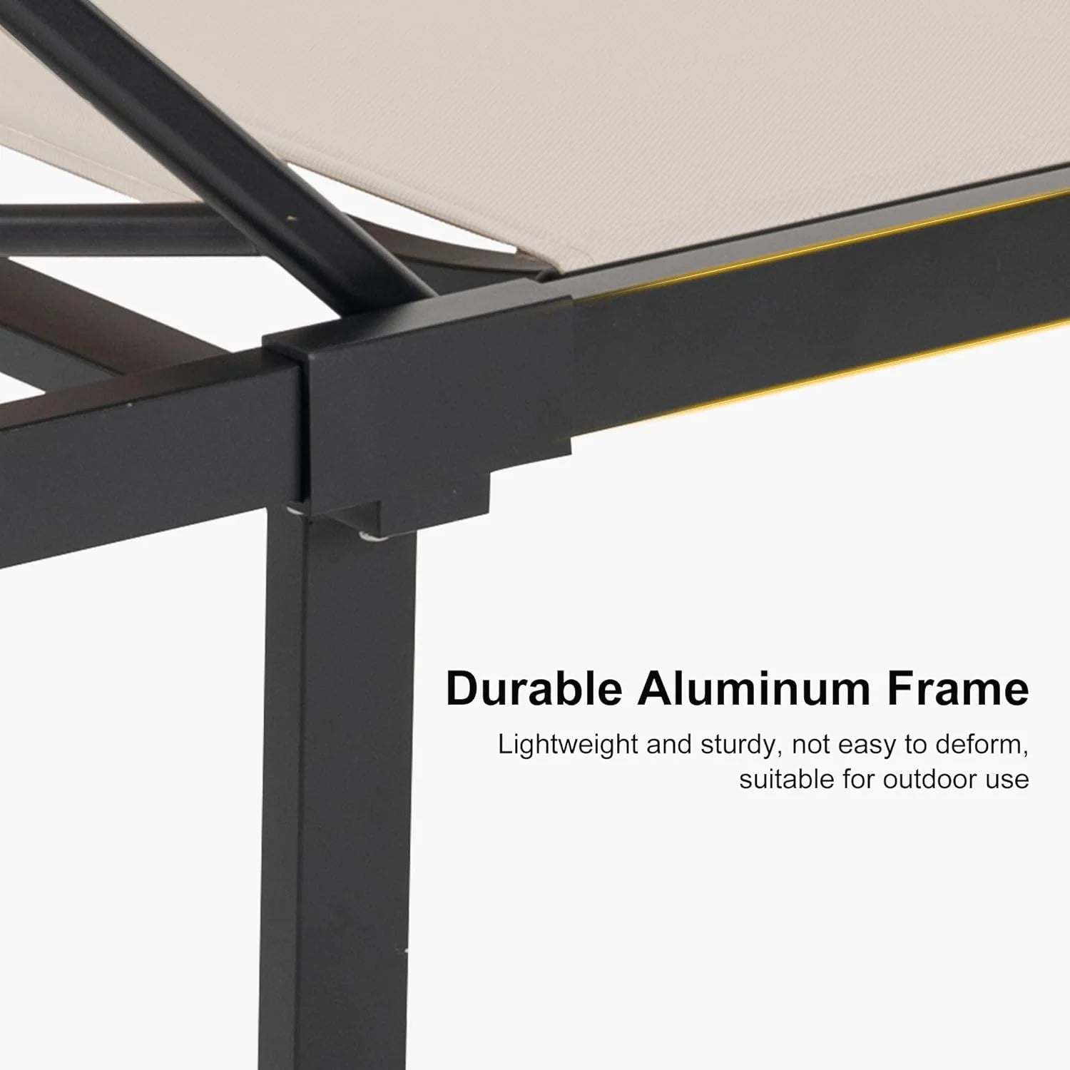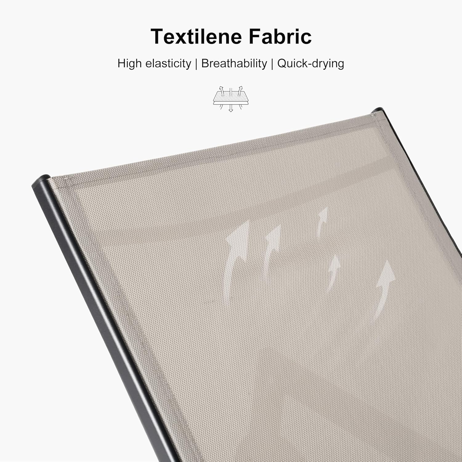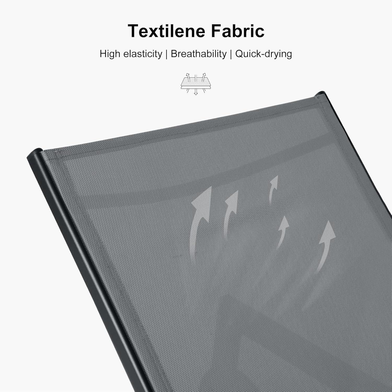 Elevate your space: Our chaise lounge chair features a sleek plastic frame that’s pool-friendly, paired with Textilene fabric for a stylish, modern look.